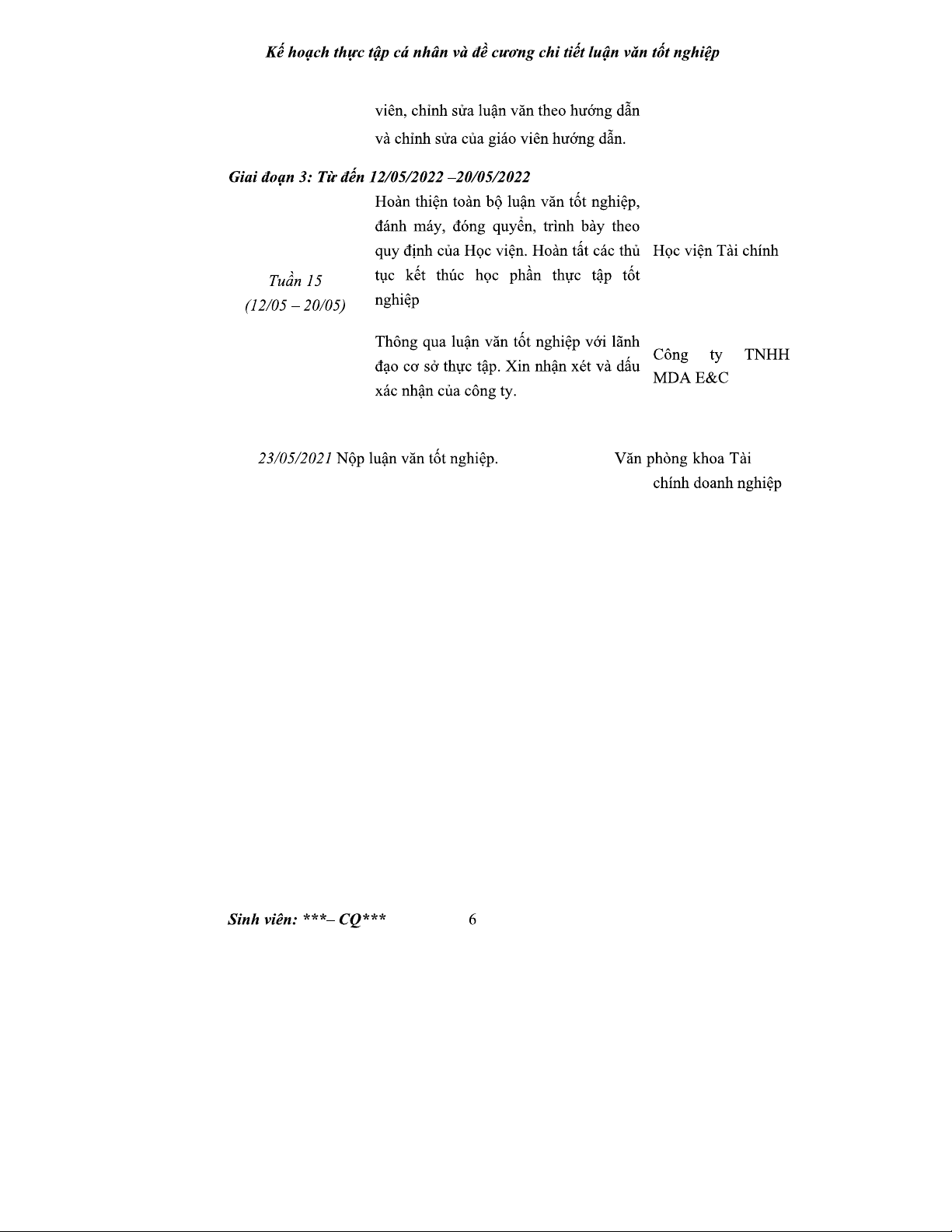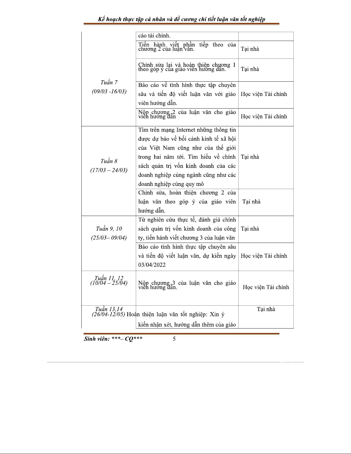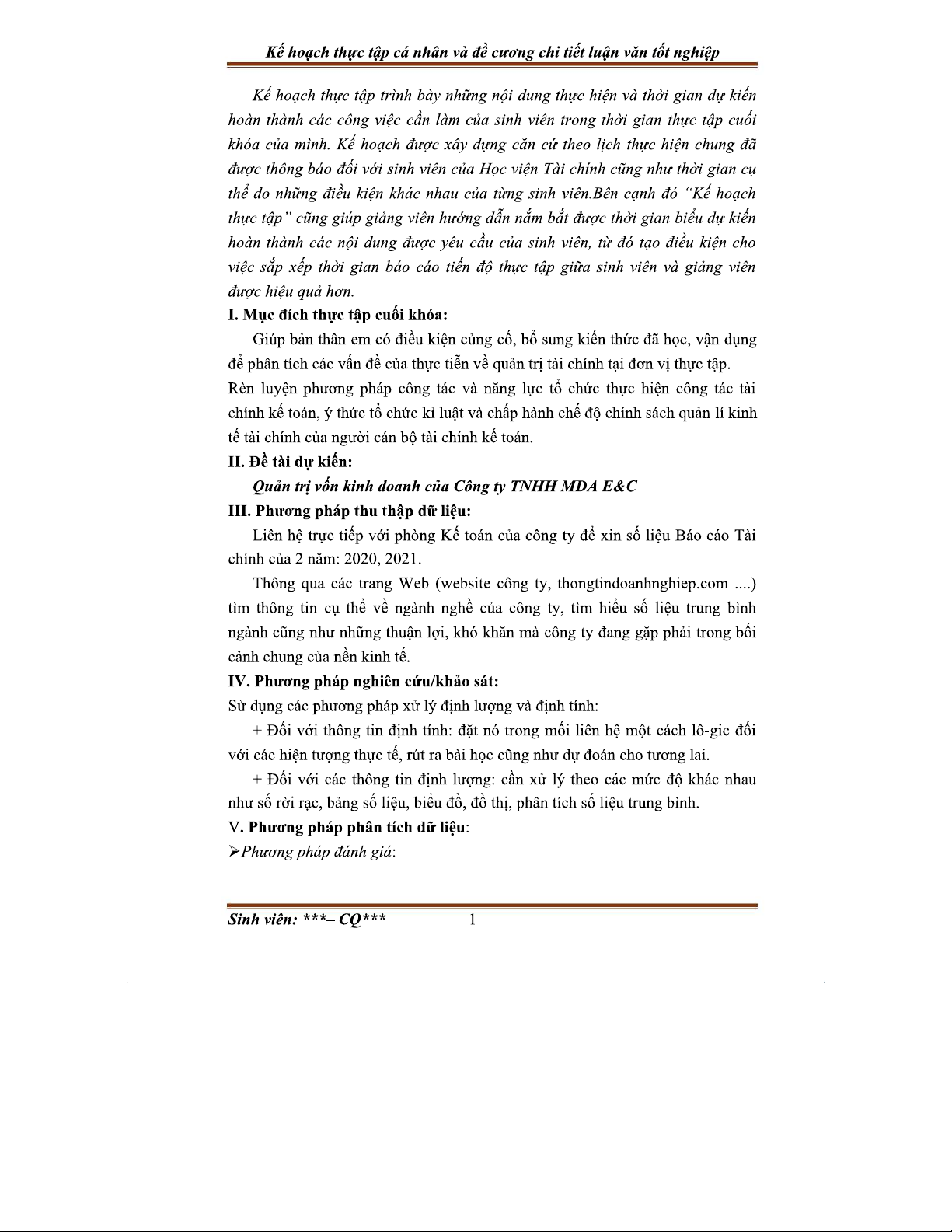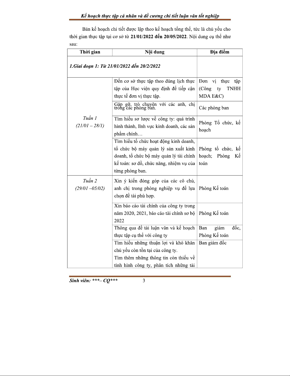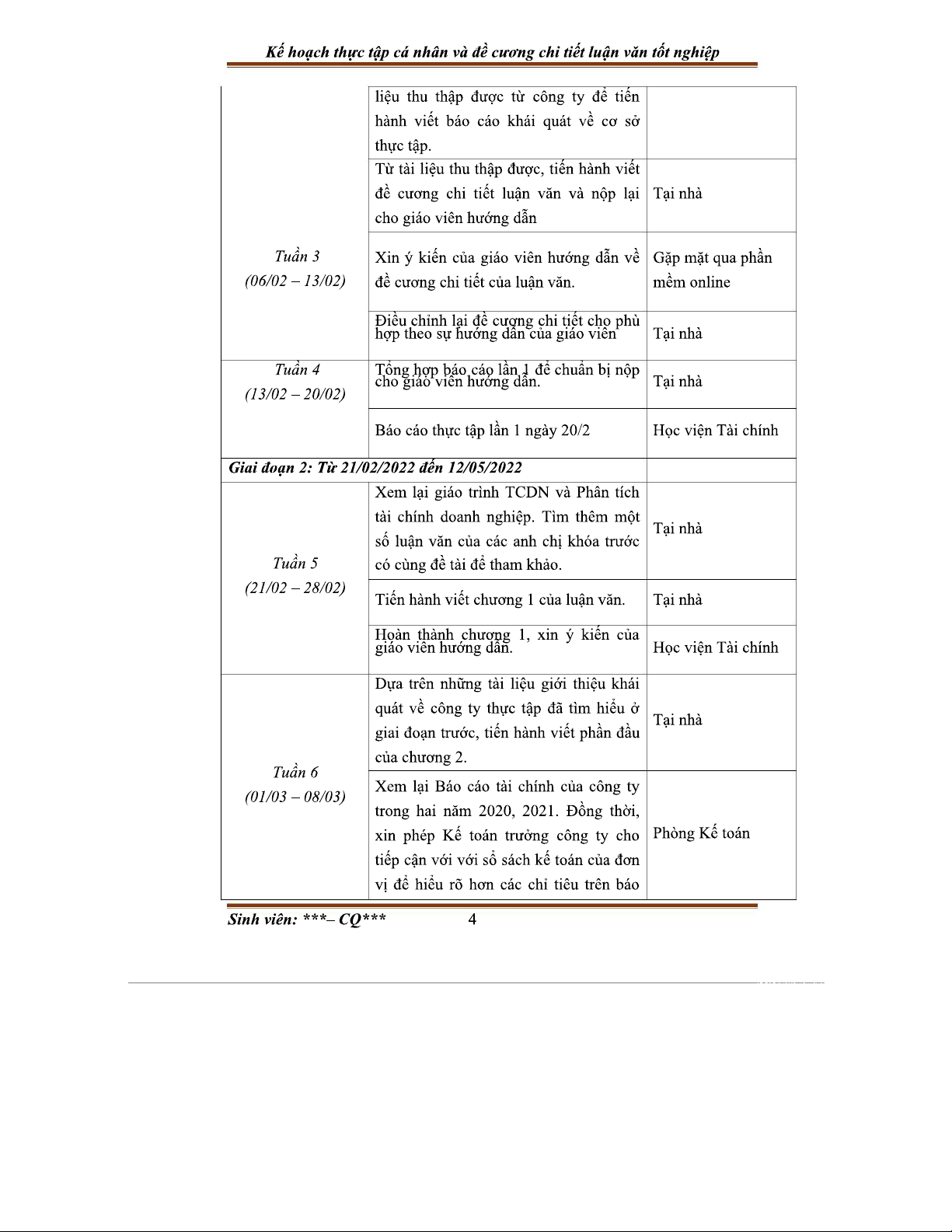 Kế hoạch Thực Tập Cá Nhân - Tài Chính Doanh Nghiệp - 2022