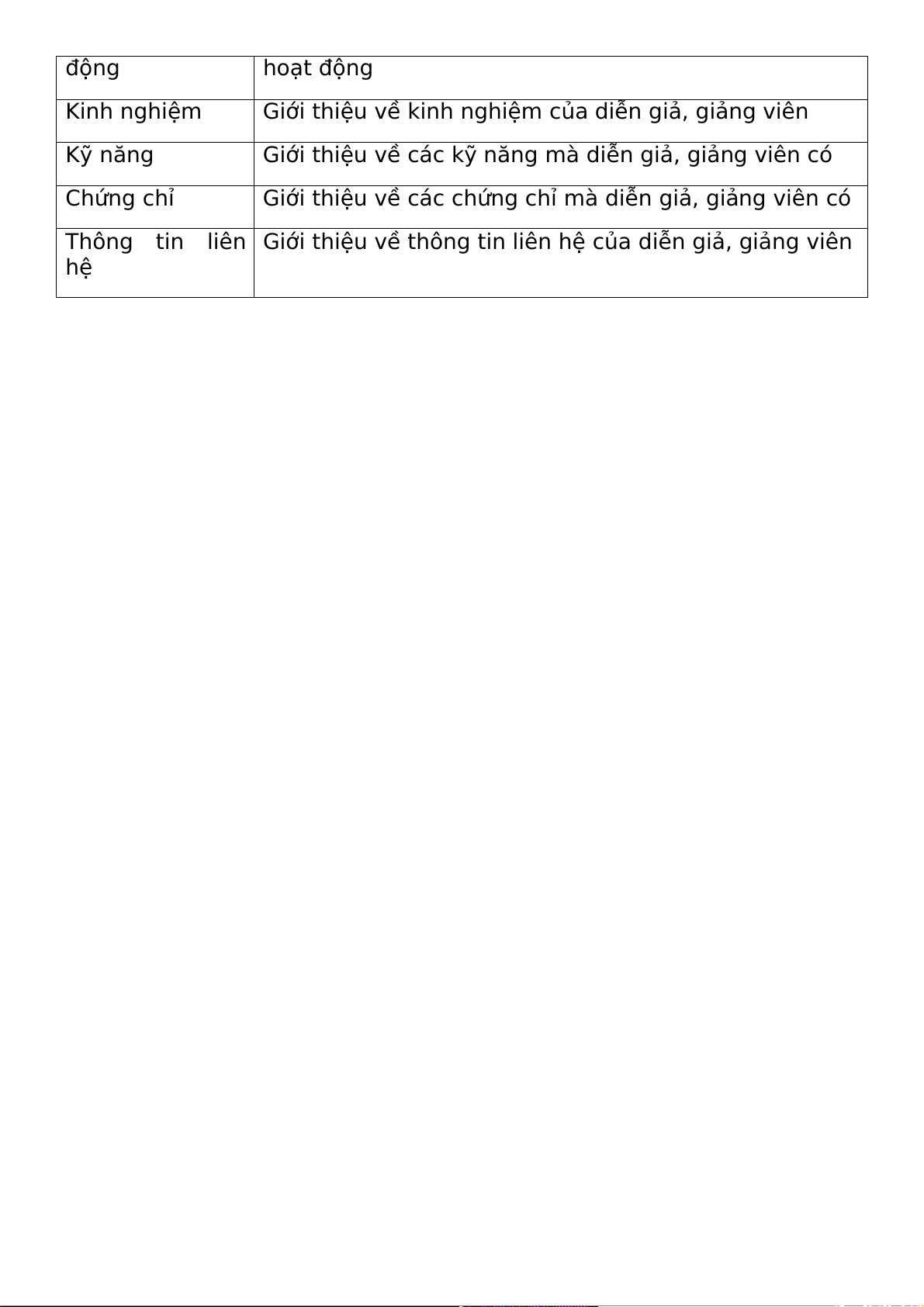 Lĩnh vực hoạt Giới thiệu về lĩnh vực mà diễn giả, giảng viên đang động hoạt động Kinh nghiệm