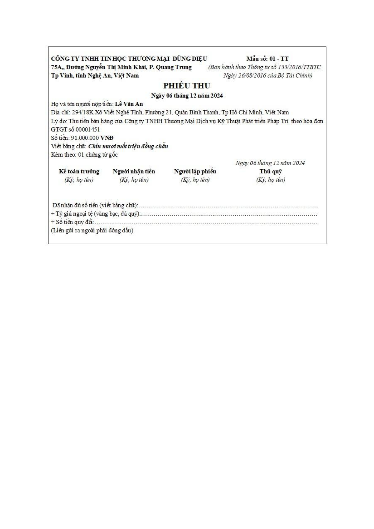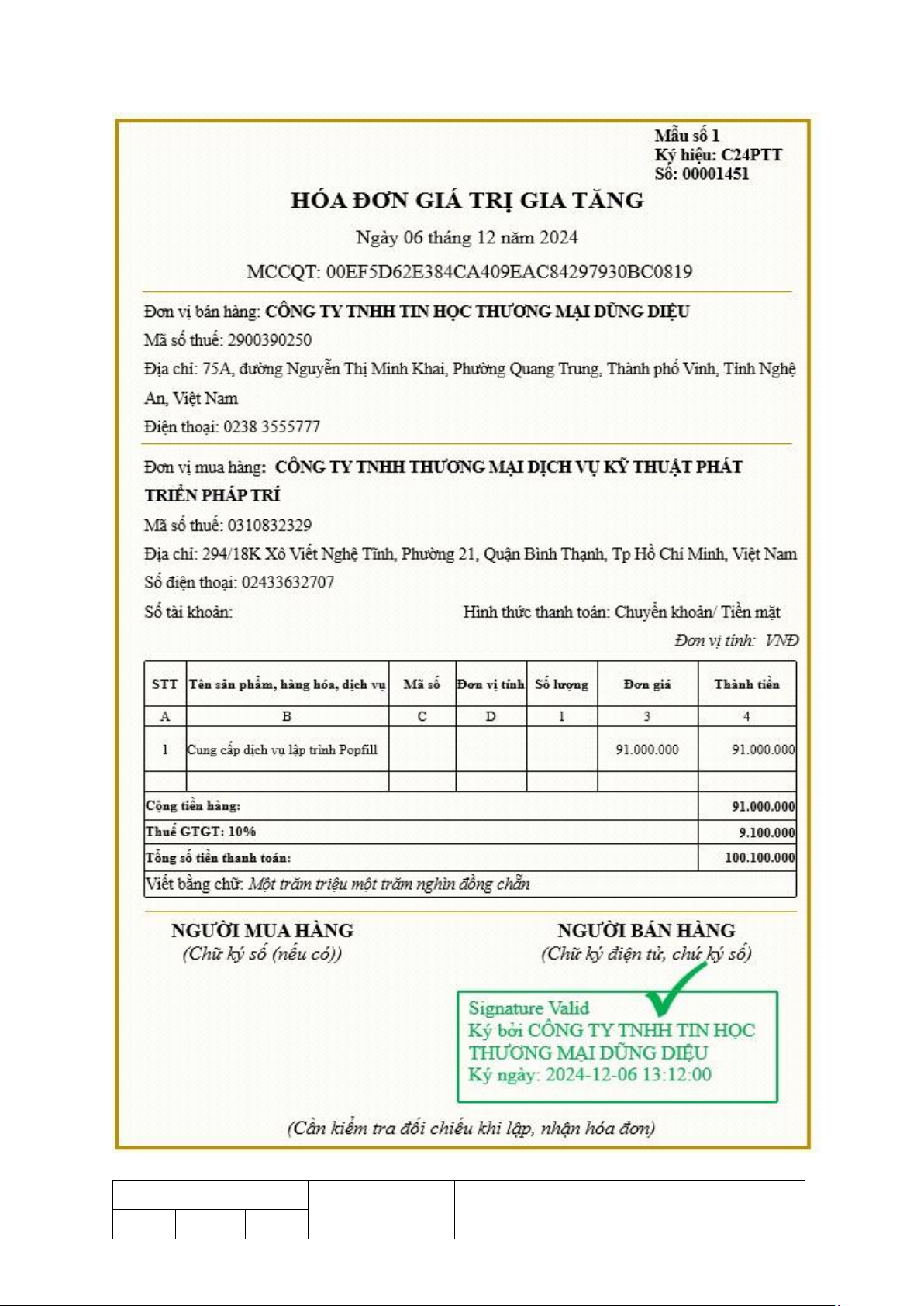 - Tên công ty : CÔNG TY TNHH TIN HỌC THƯƠNG MẠI DŨNG  DIỆU