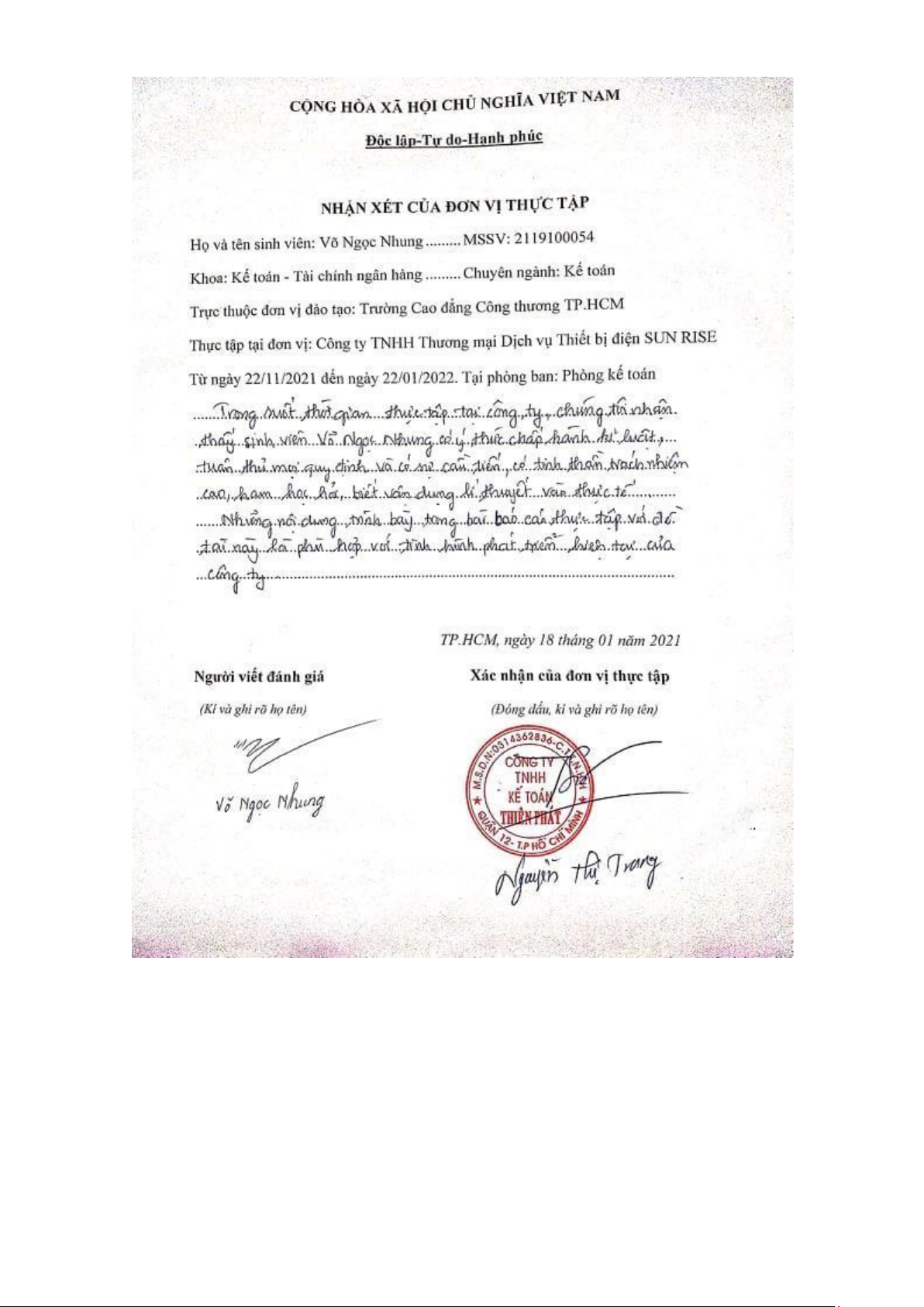 TP. HCM, ngày 10 tháng 01 năm 2021 Sinh viên thực hiện VÕ NGỌC NHUNG lOMoAR cPSD| 58797173 MỤC LỤC