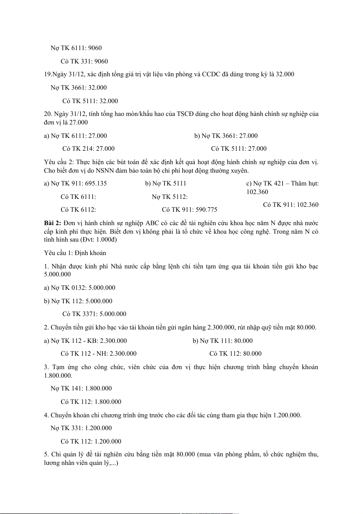 Bài 2: Đơn vị hành chính sự nghiệp ABC có các đề tài nghiên cứu khoa học năm N đựợc nhà nước