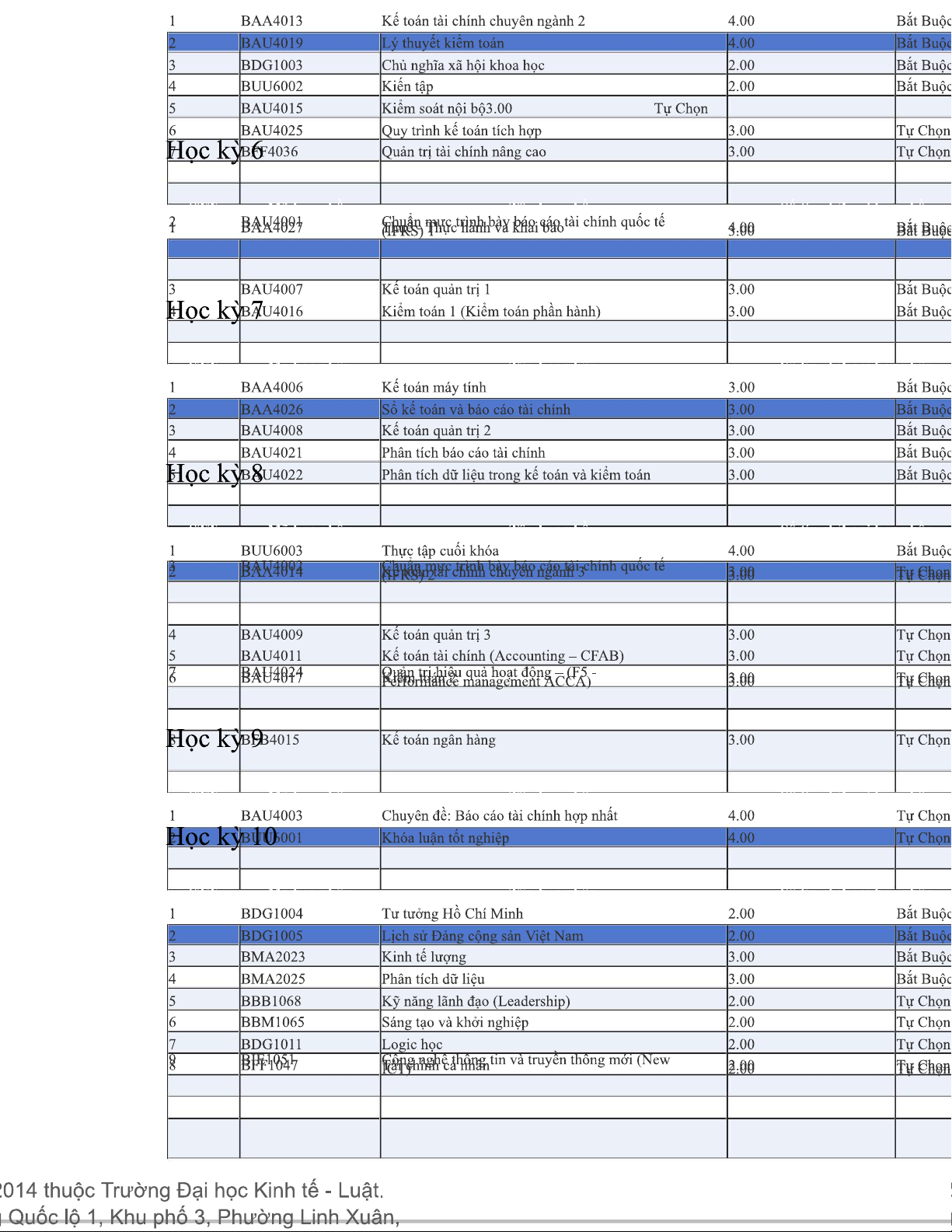 Kế toán Khóa 24 - Chương trình đào tạo Đại học Chính quy