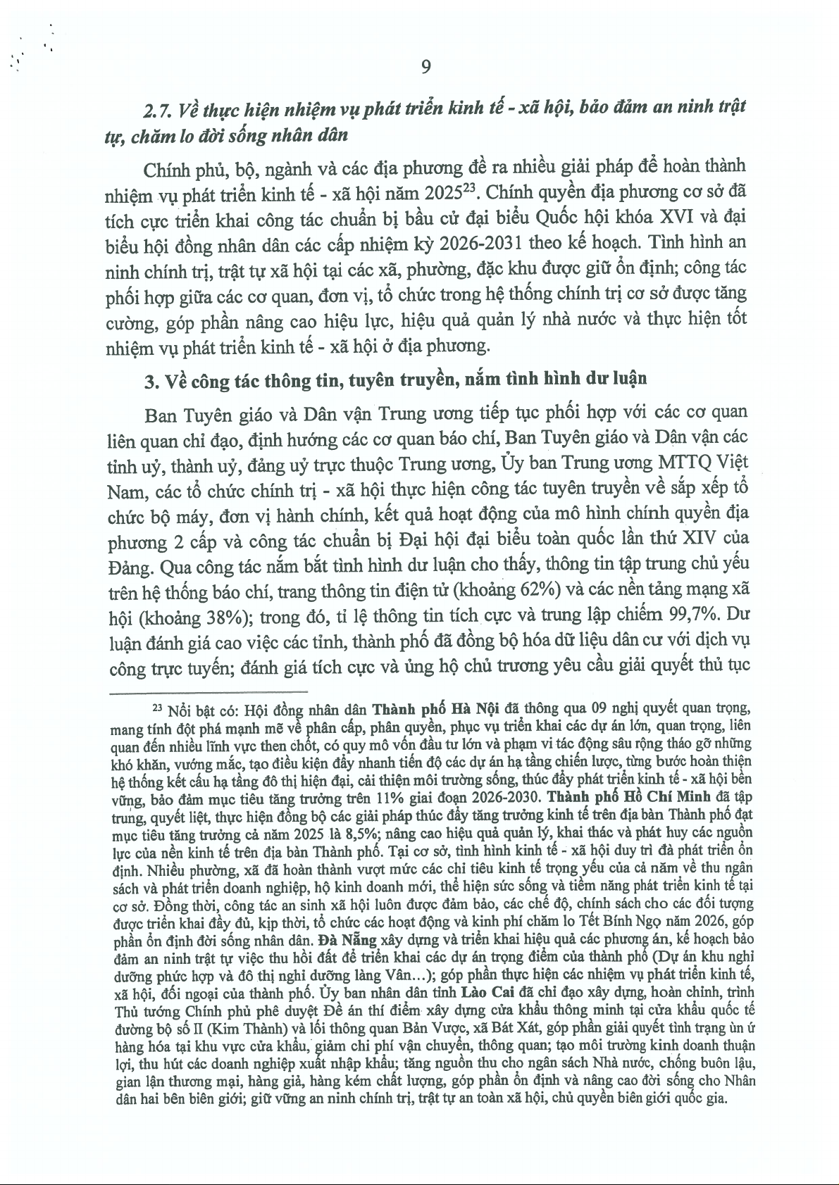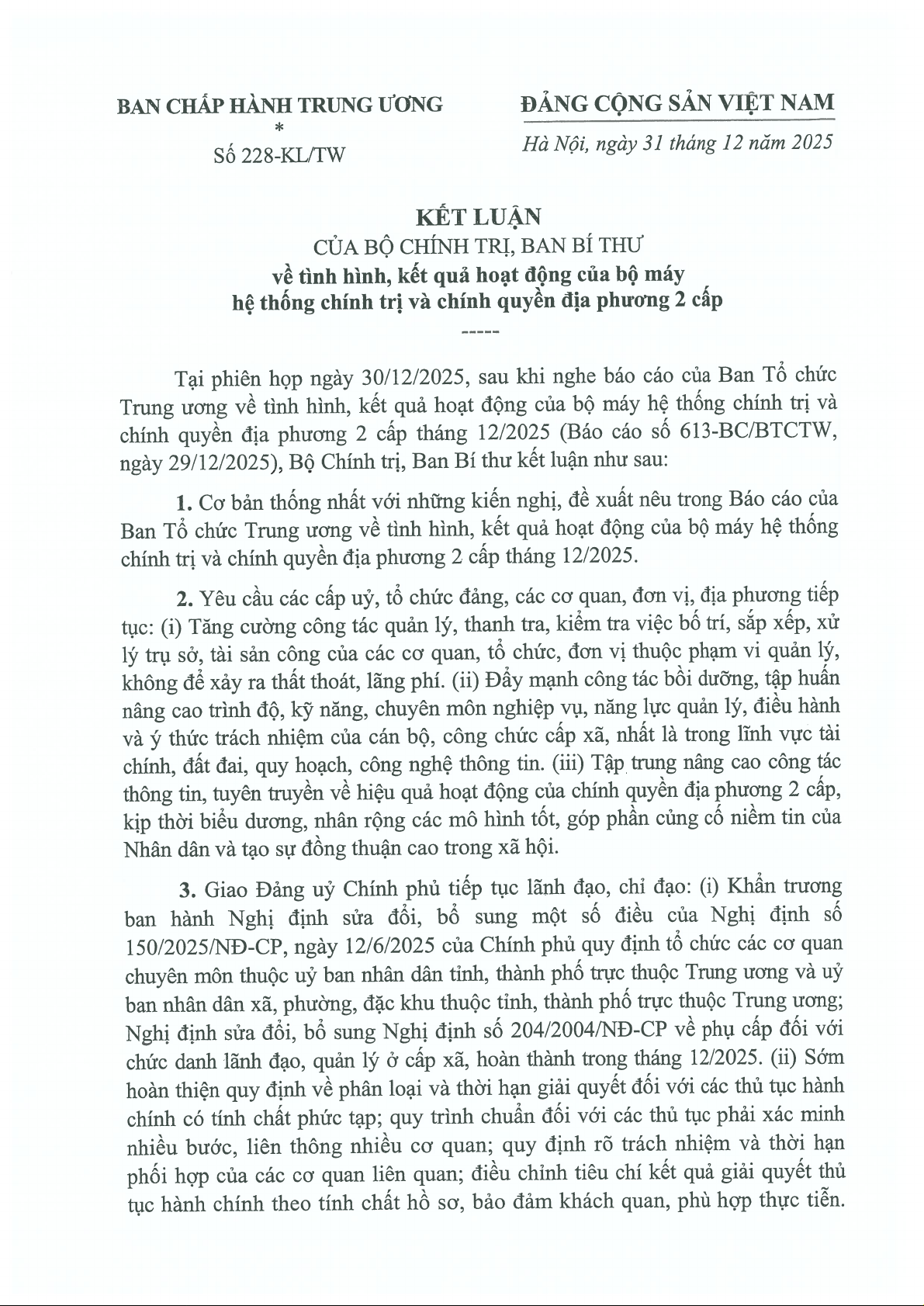 Kết luận về tình hình, kết quả hoạt động của bộ máy hệ thống chính trị và chính quyền địa phương 2 cấp