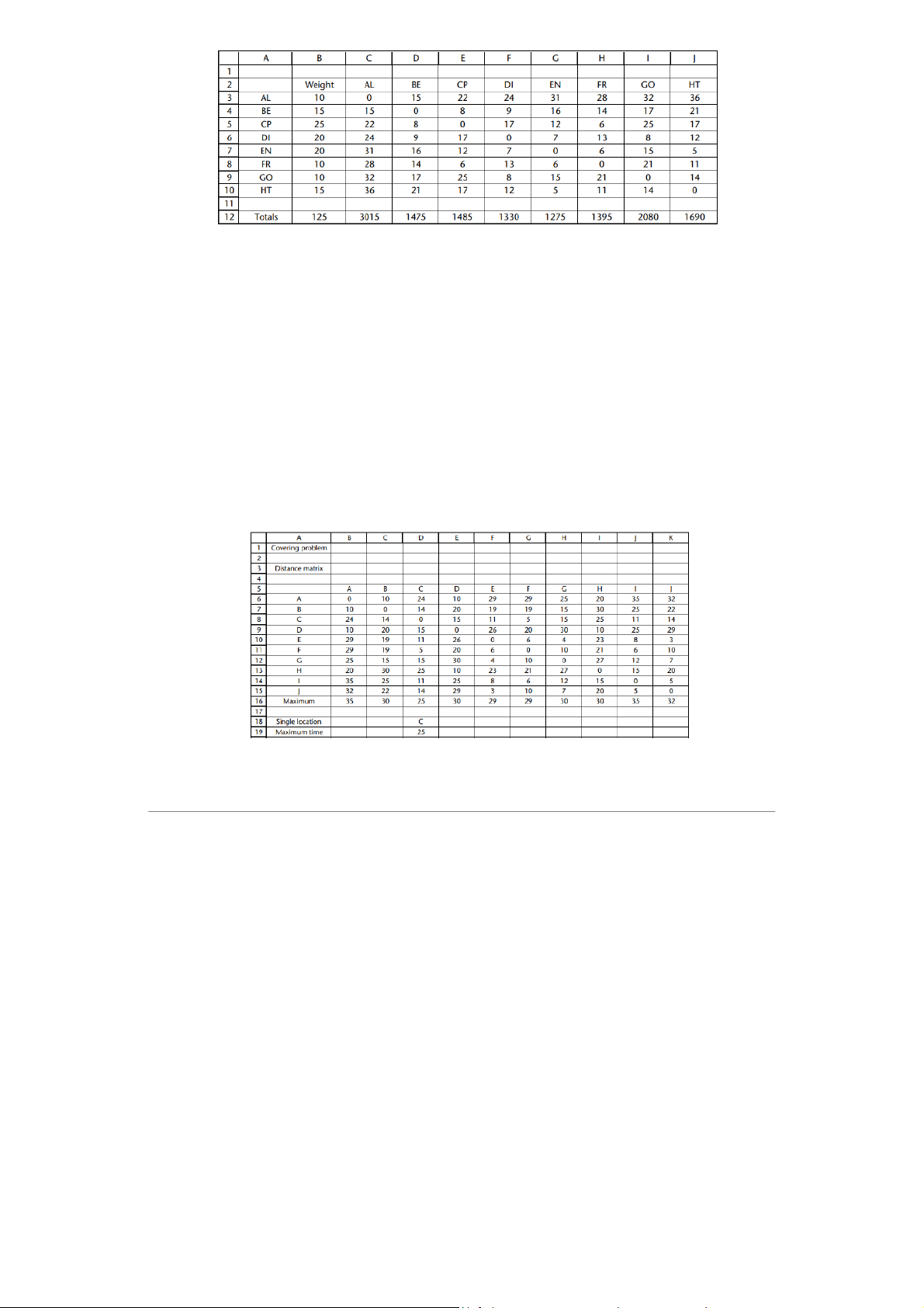 distance of a centre at AL = (10 × 0) + (15 × 15) + (25 × 22) + (20 × 24) + (20 × 31) +