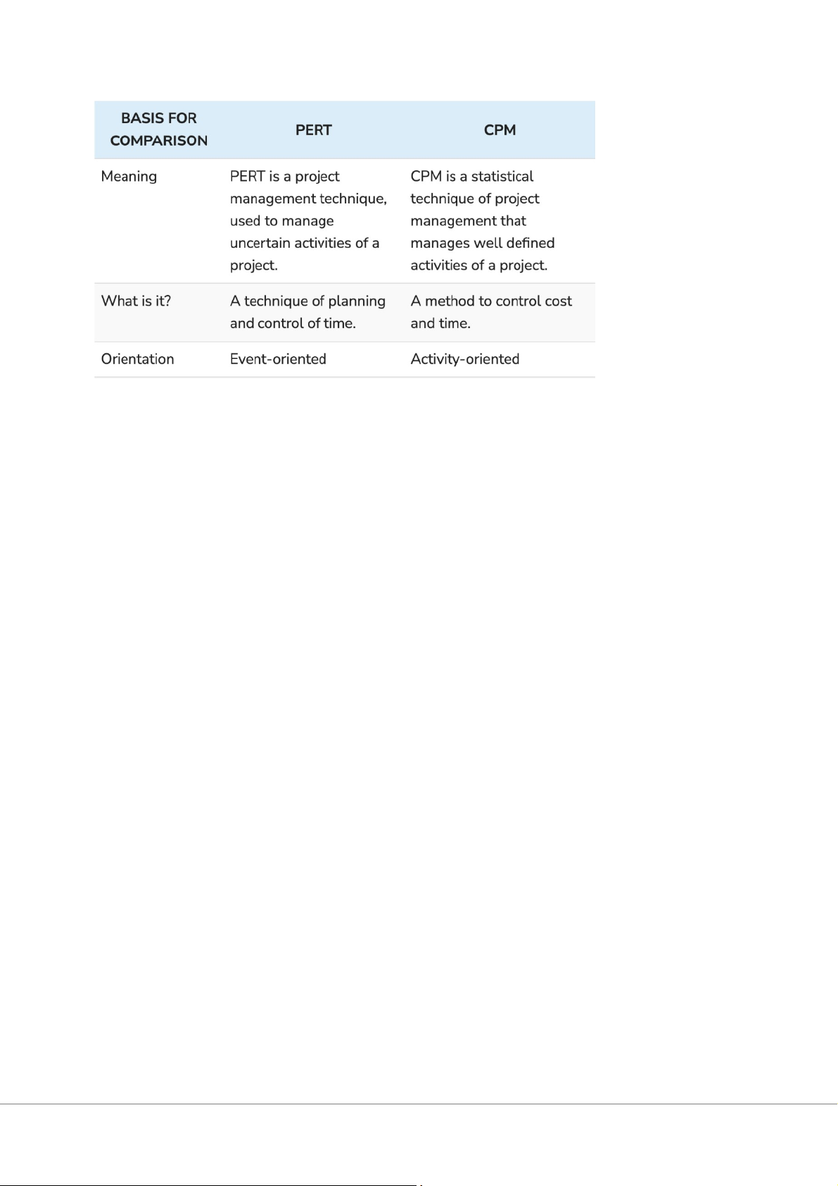 2. CPM/PERT chart: combination of the critical path method and program evaluation and review technique