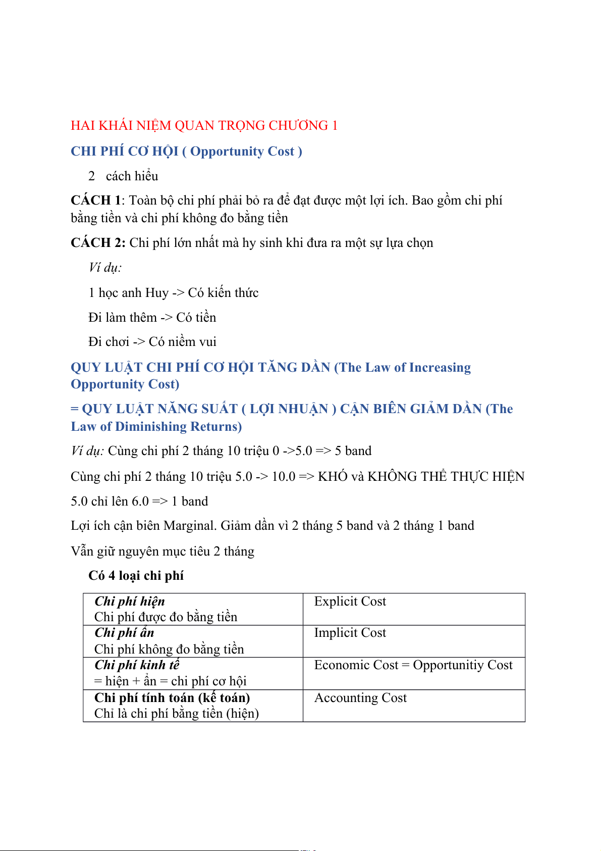 Vẫn giữ nguyên mục tiêu 2 tháng Có 4 loại chi phí Chi phí hiện Explicit Cost