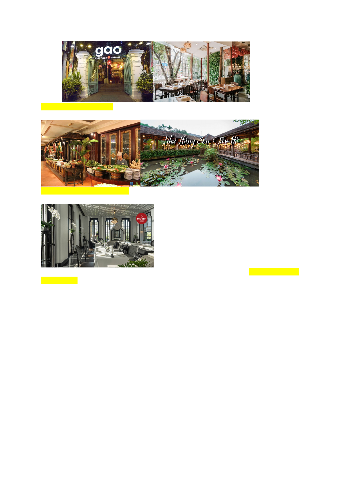 Nhà hàng Sen Tây Hồ (Hà Nội): mô hình buffet, nổi tiếng với hơn 200 món ăn Việt – Á – Âu, rất hút khách du lịch.