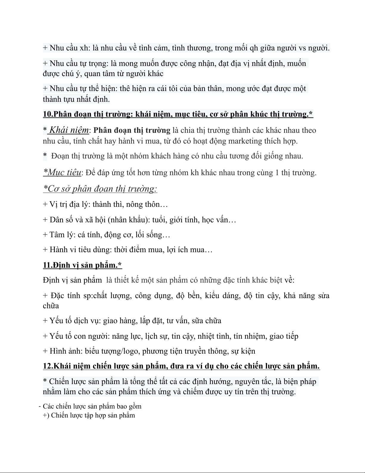 *Các yếu tố trong mô hình marketing: 1.Nhu cầu:
