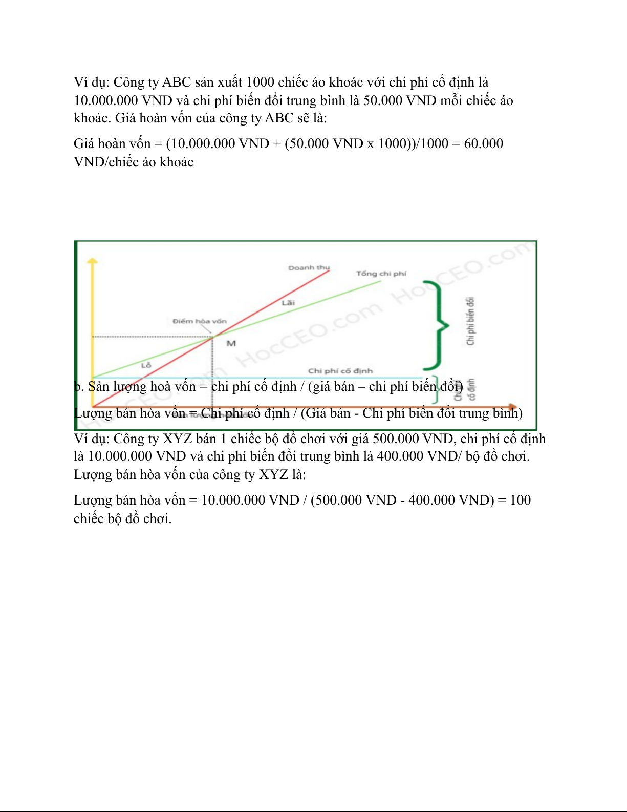 a. Giá hoàn vốn: khi biết sản lượng, chi phí cố định, chi phí biến đổi tb