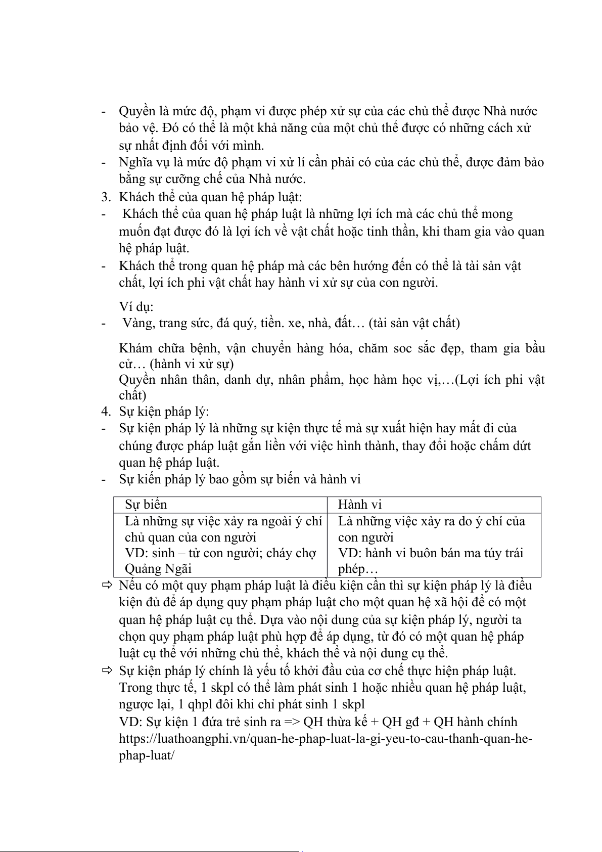 - Sự kiện pháp lý là những sự kiện thực tế mà sự xuất hiện hay mất đi của