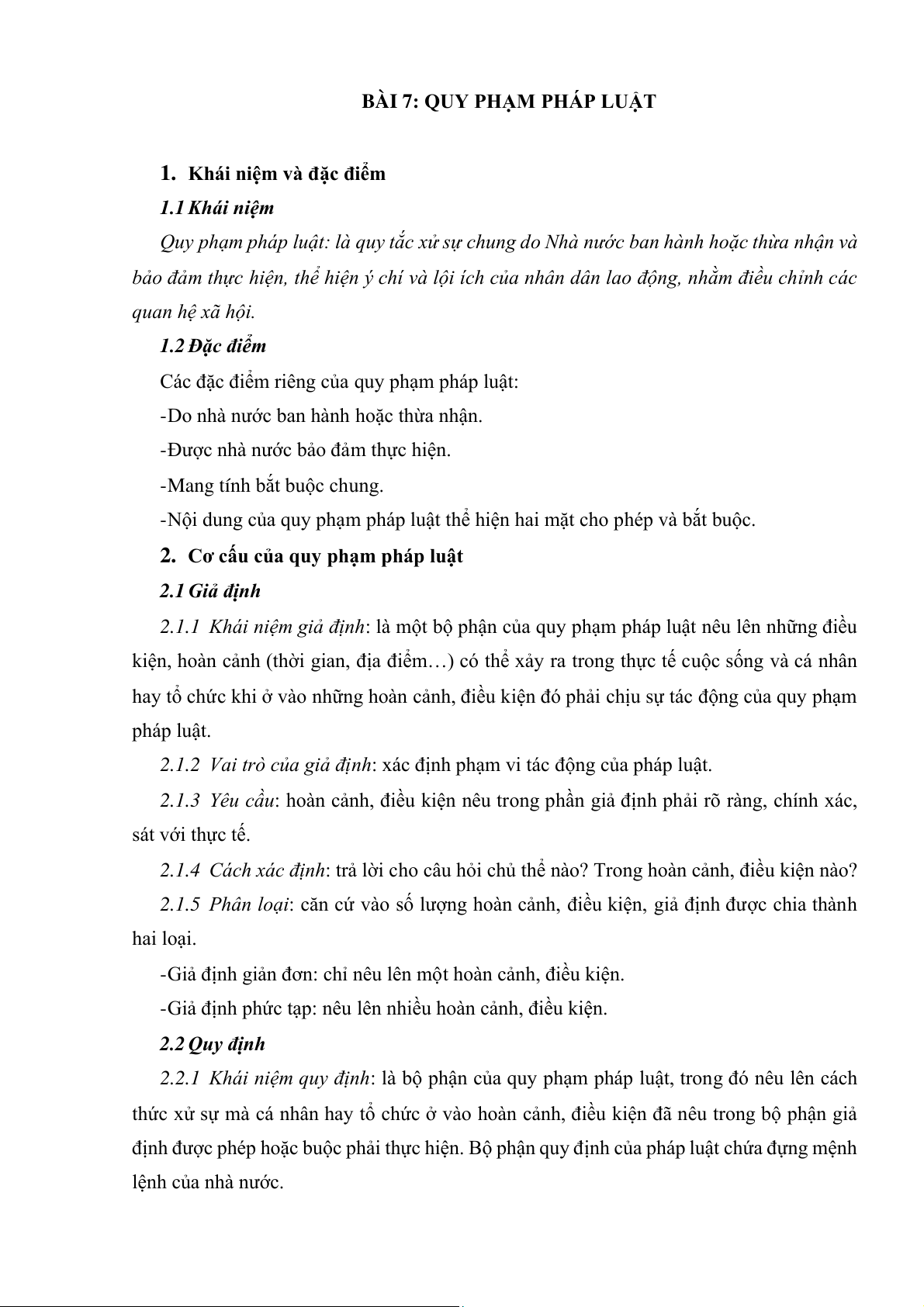 BÀI 7: QUY PHẠM PHÁP LUẬT