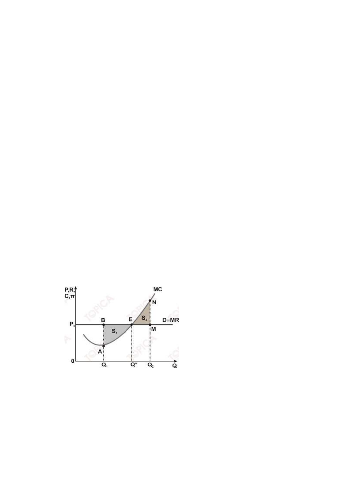 Tại mức sản lượng Q1thì P = MC ( tối đa hóa lợi nhuận ) => 1> π 2π => Chọn ý 1