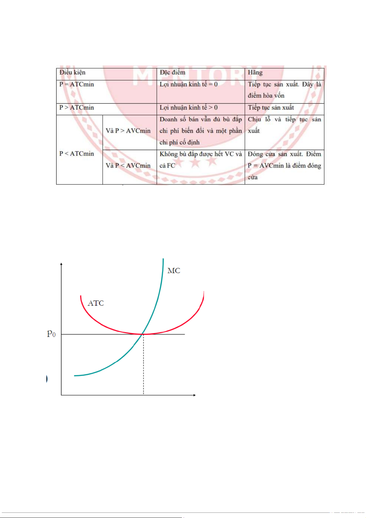 - Hãng đóng cửa sản xuất khi P ≤ AVCmin