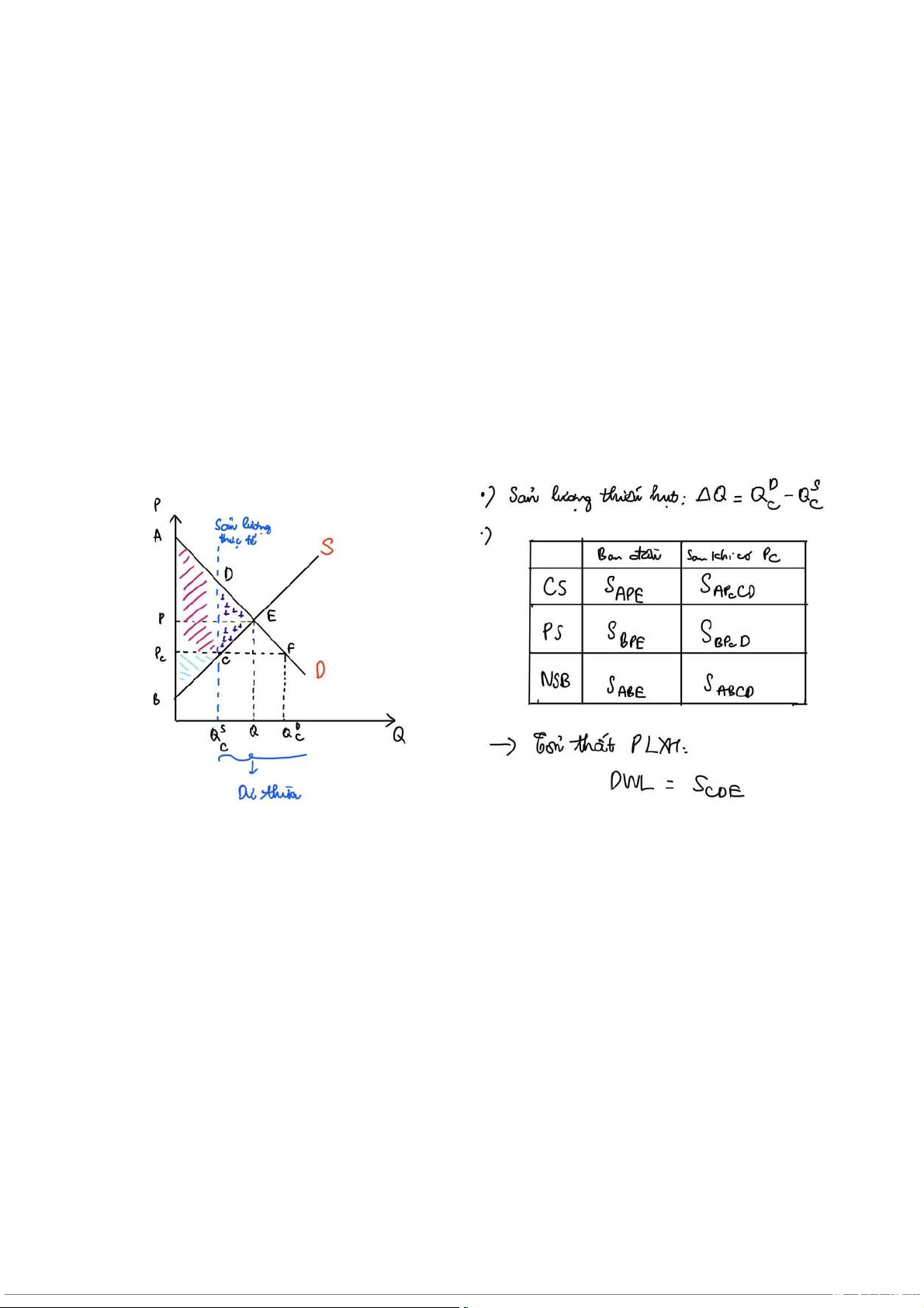 - Consumer Surplus (CS): Thặng dư người tiêu dùng