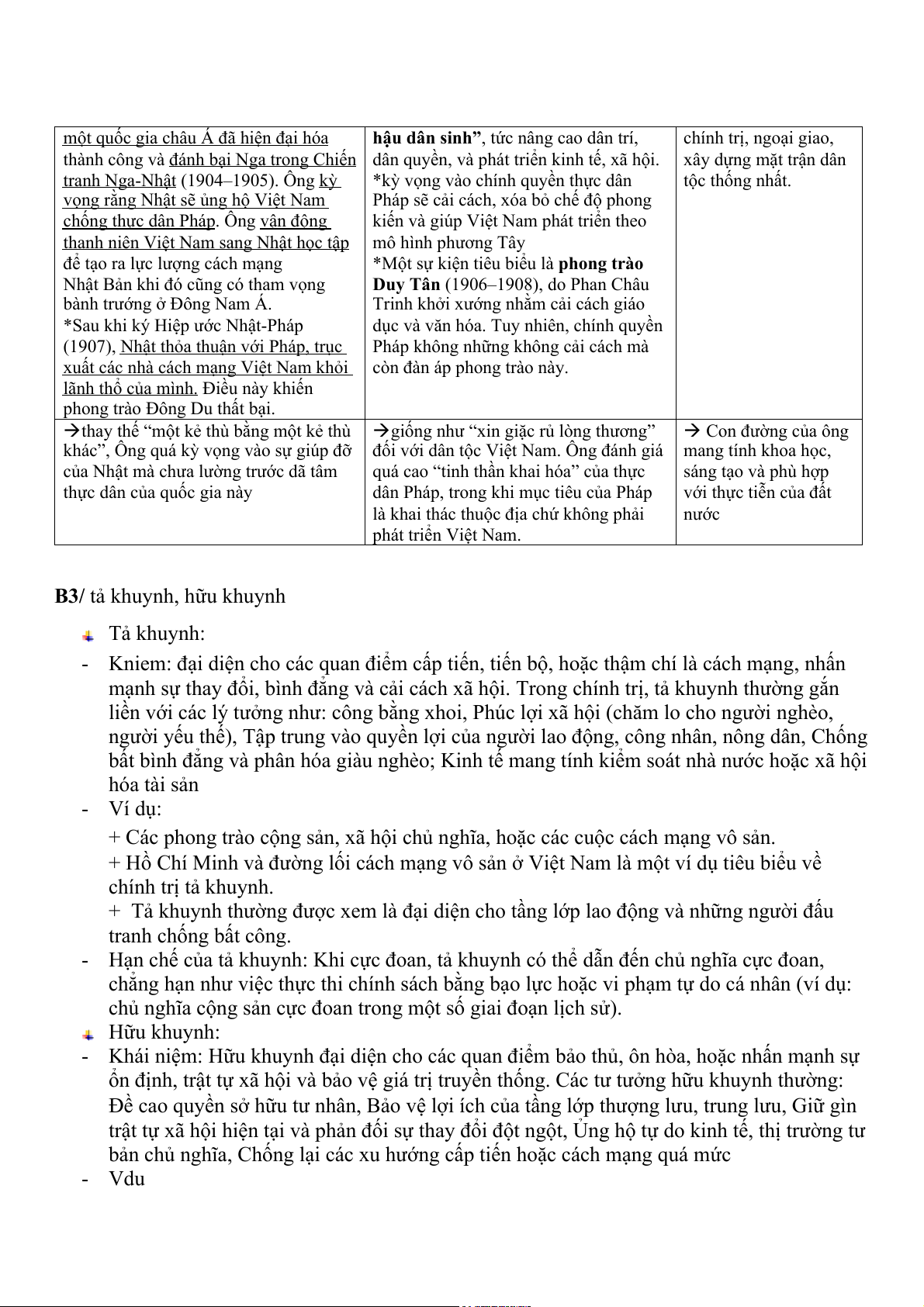 + Chế độ phong kiến hoặc chế độ thực dân là đại diện cho tư tưởng hữu khuynh trong lịch sử Việt Nam