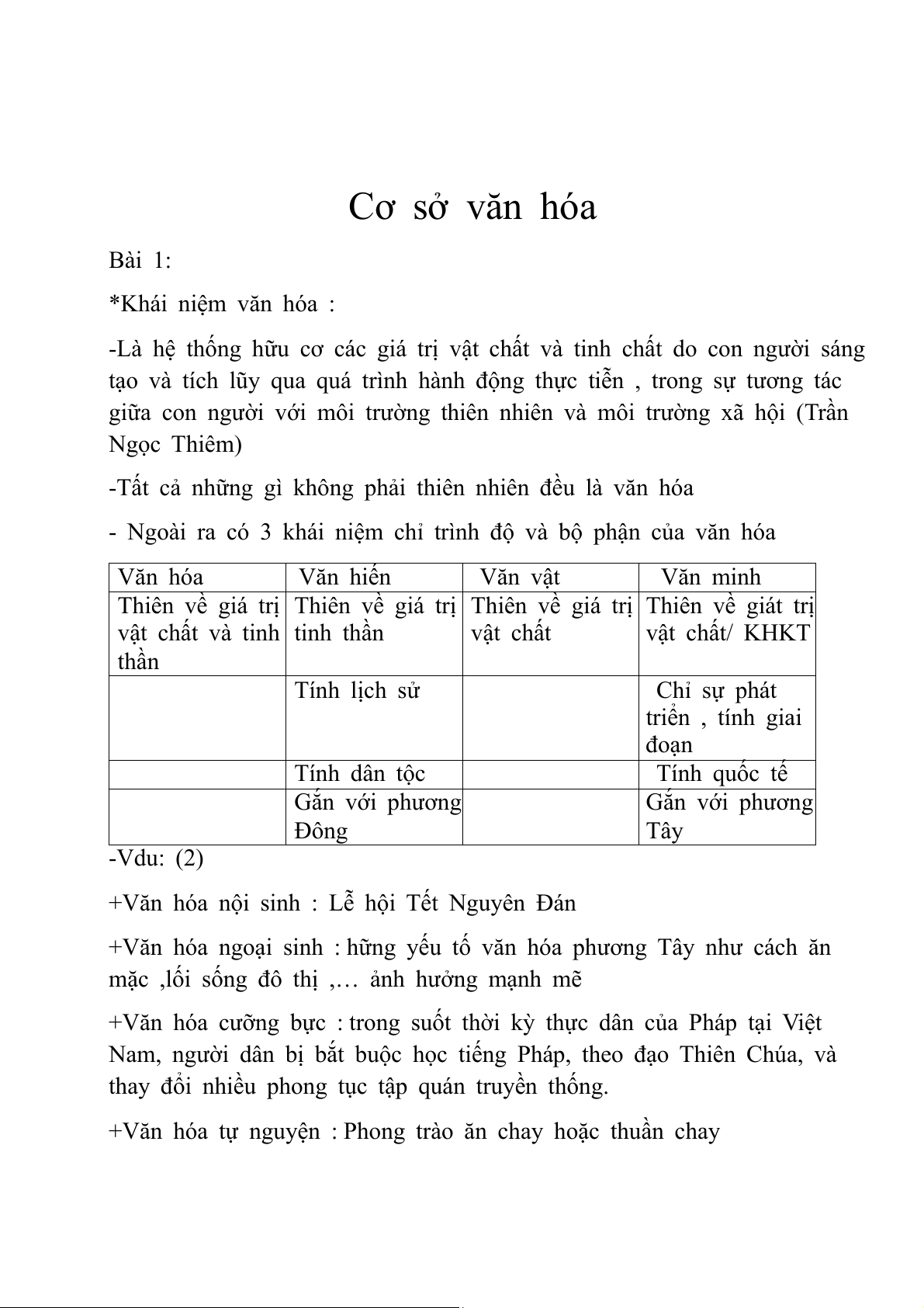 Cơ sở văn hóa Bài 1: *Khái niệm văn hóa :