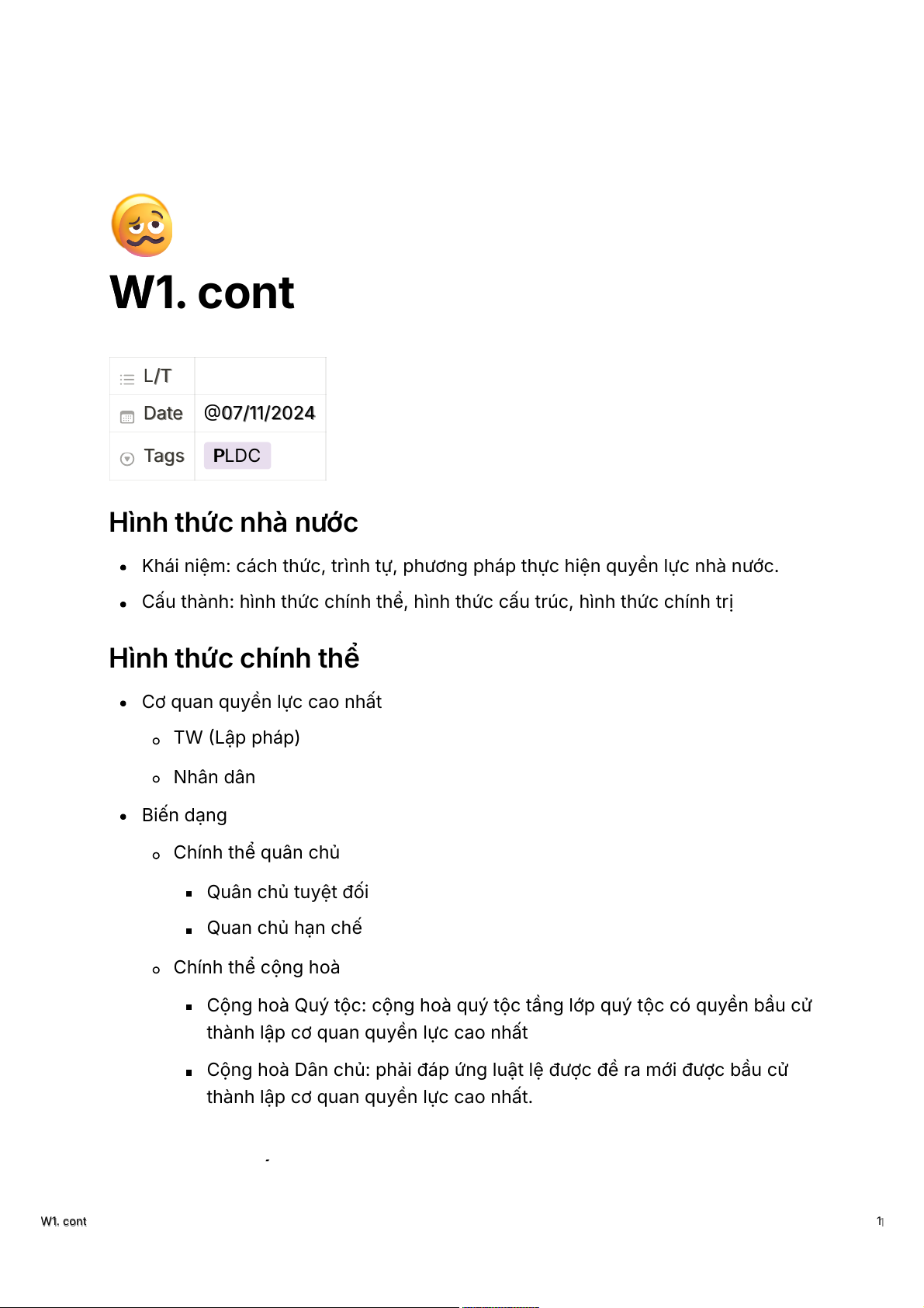 🥴 W1. cont L/T Date 07/11/2024 Tags PLDC