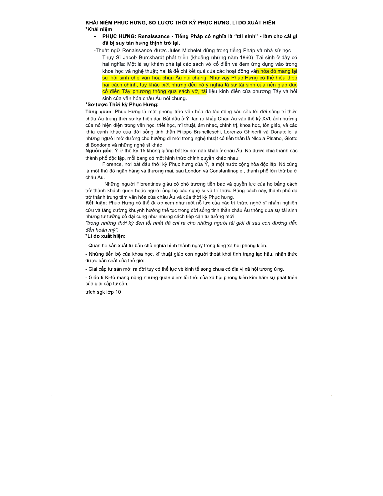 KHÁI NIỆM VÀ NGUỒN GỐC THỜI KỲ PHỤC HƯNG - SGK LỚP 10