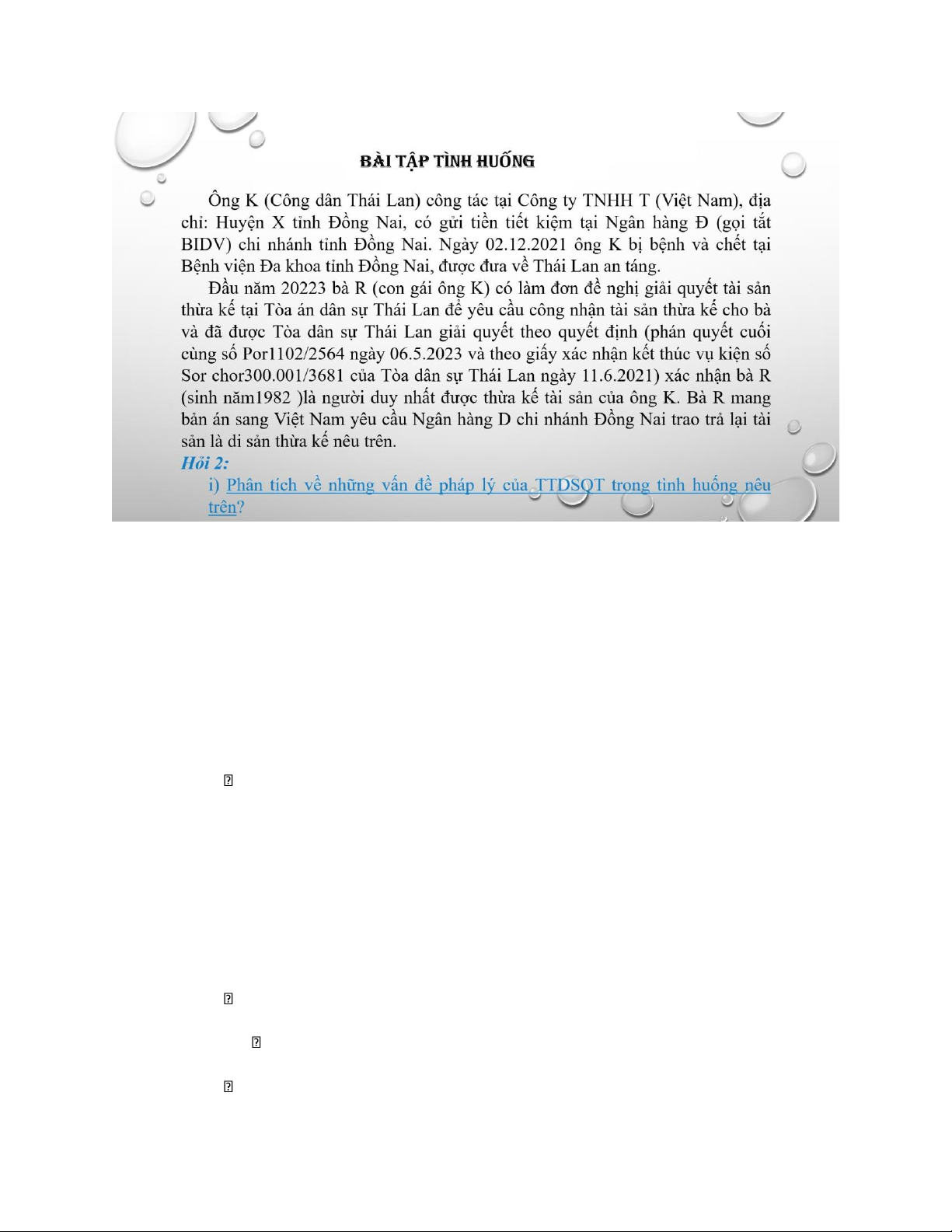 Dù câu hỏi có hỏi hay không hỏi thì cũng phải xác định yếu tố nước ngoài -> Để xem vụ