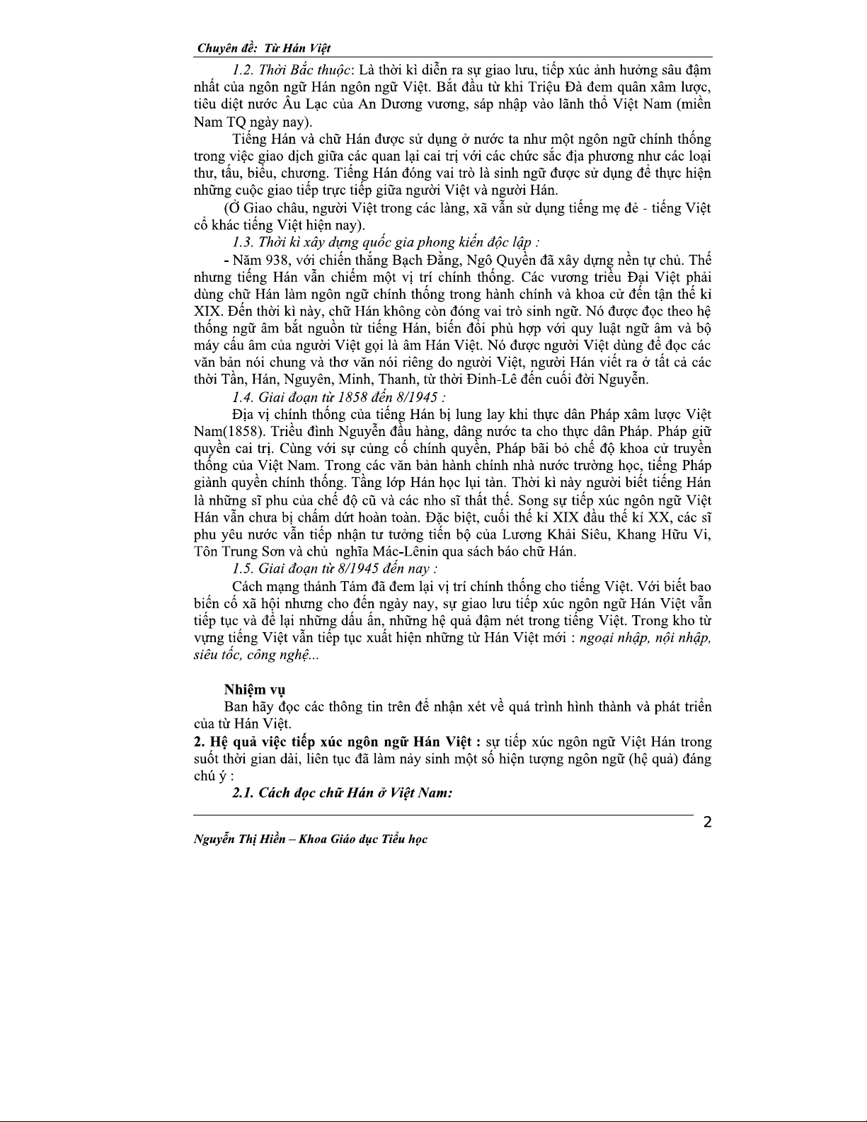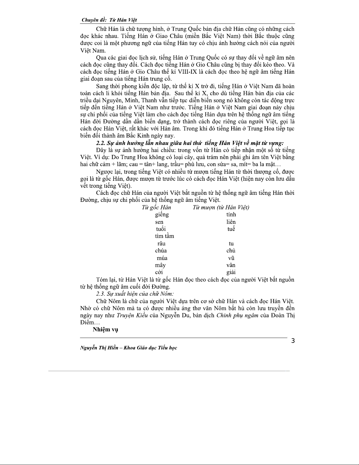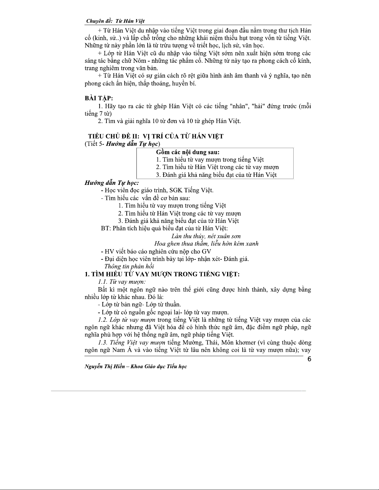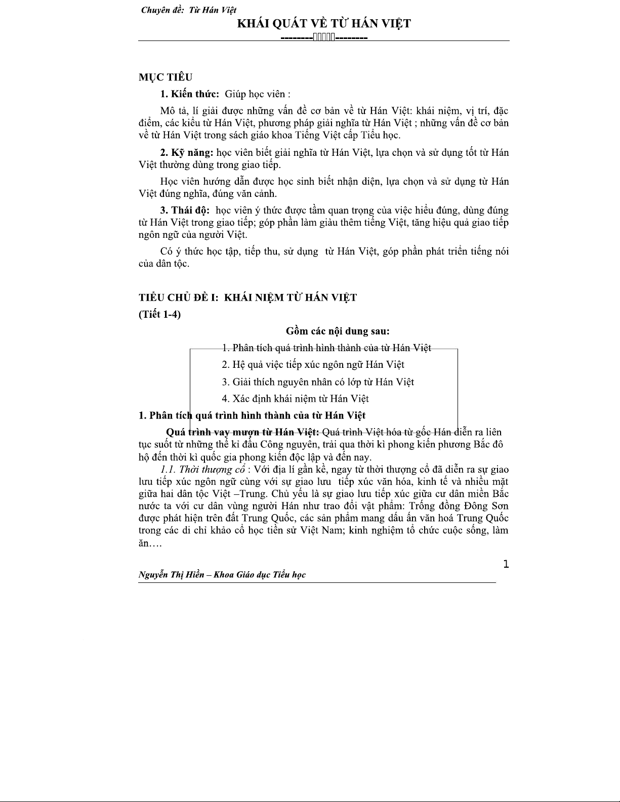 Khái Niệm và Phát Triển Từ Hán Việt - Môn Học Tu HV cho SV-HV