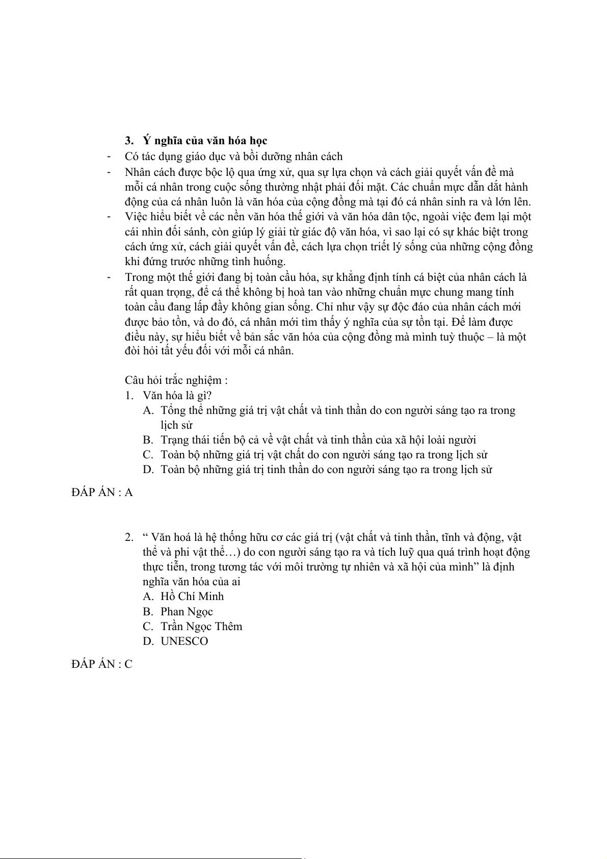 đòi hỏi tất yếu đối với mỗi cá nhân. Câu hỏi trắc nghiệm : 1. Văn hóa là gì?