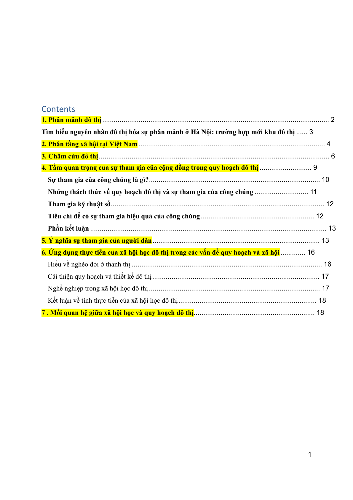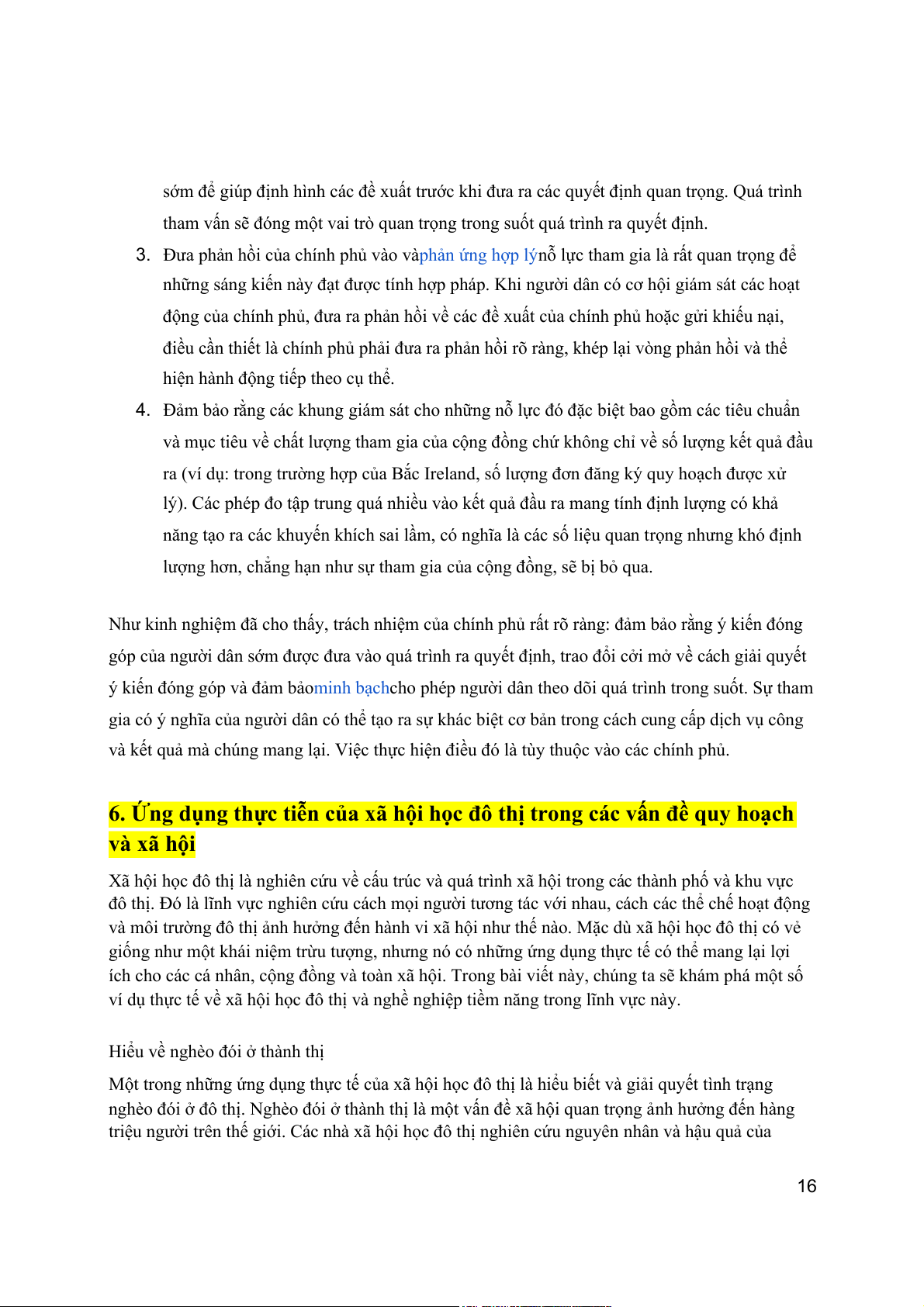 6. Ứng dụng thực tiễn của xã hội học đô thị trong các vấn đề quy hoạch và xã hội ............. 16