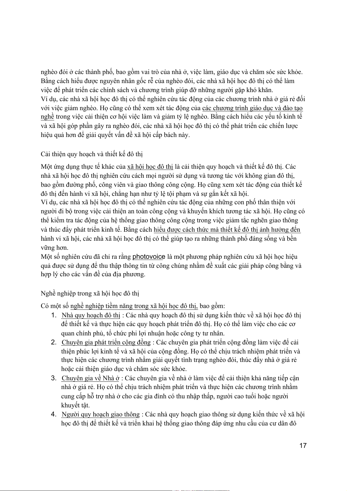 hoạch và thiết kế đô thị. Nếu bạn quan tâm đến việc theo đuổi sự nghiệp xã hội học đô thị, có