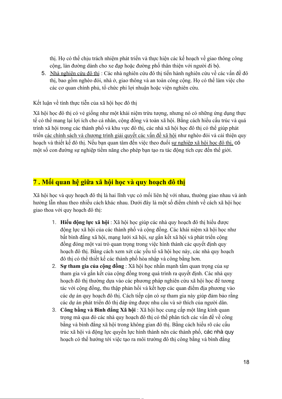 7 . Mối quan hệ giữa xã hội học và quy hoạch đô thị