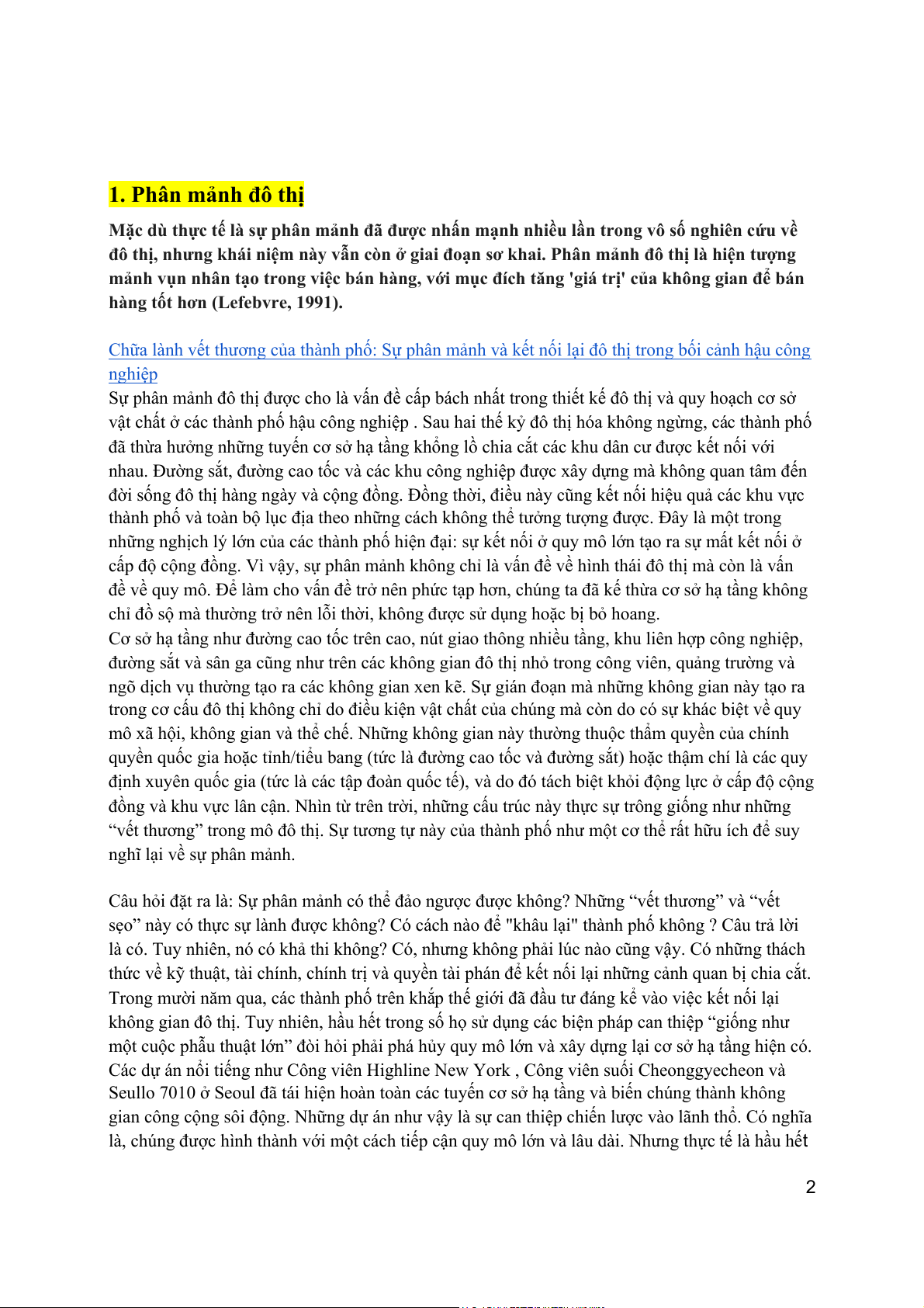 1. Phân mảnh đô thị ...................................................................................................................... 2
