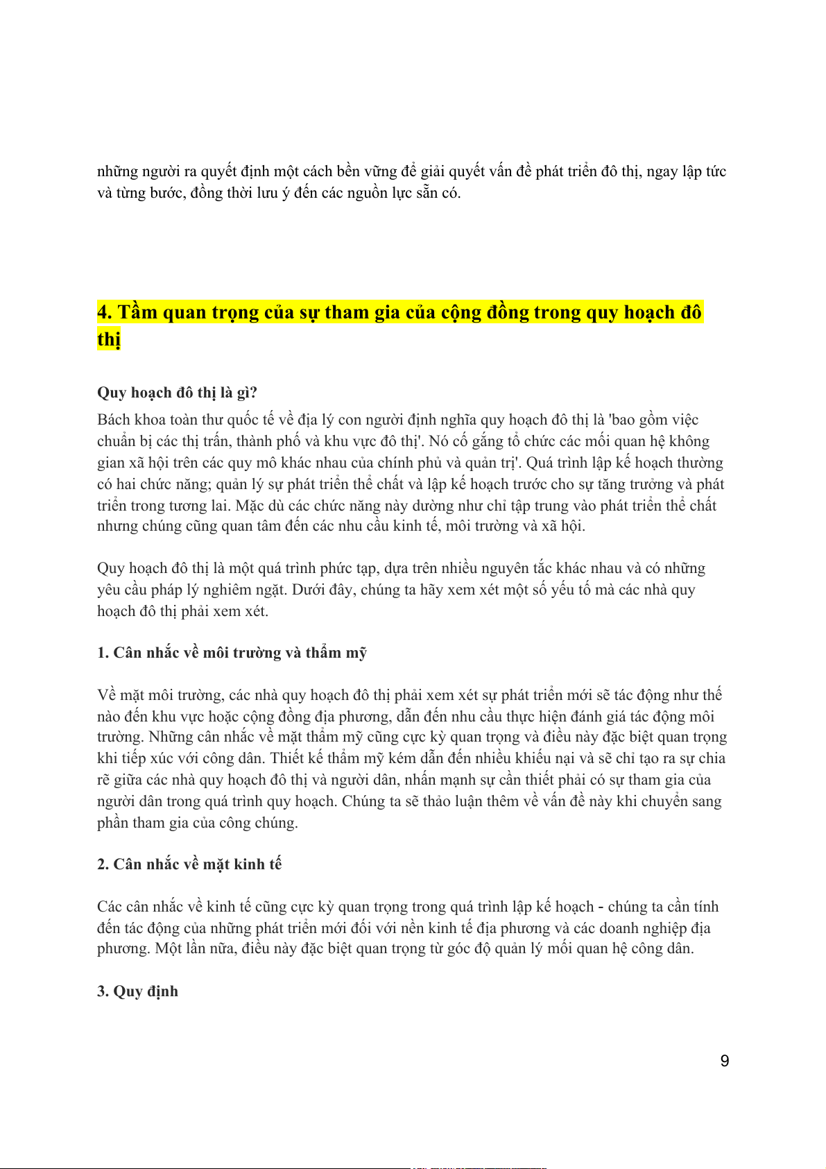 4. Tầm quan trọng của sự tham gia của cộng đồng trong quy hoạch đô thị ........................... 9