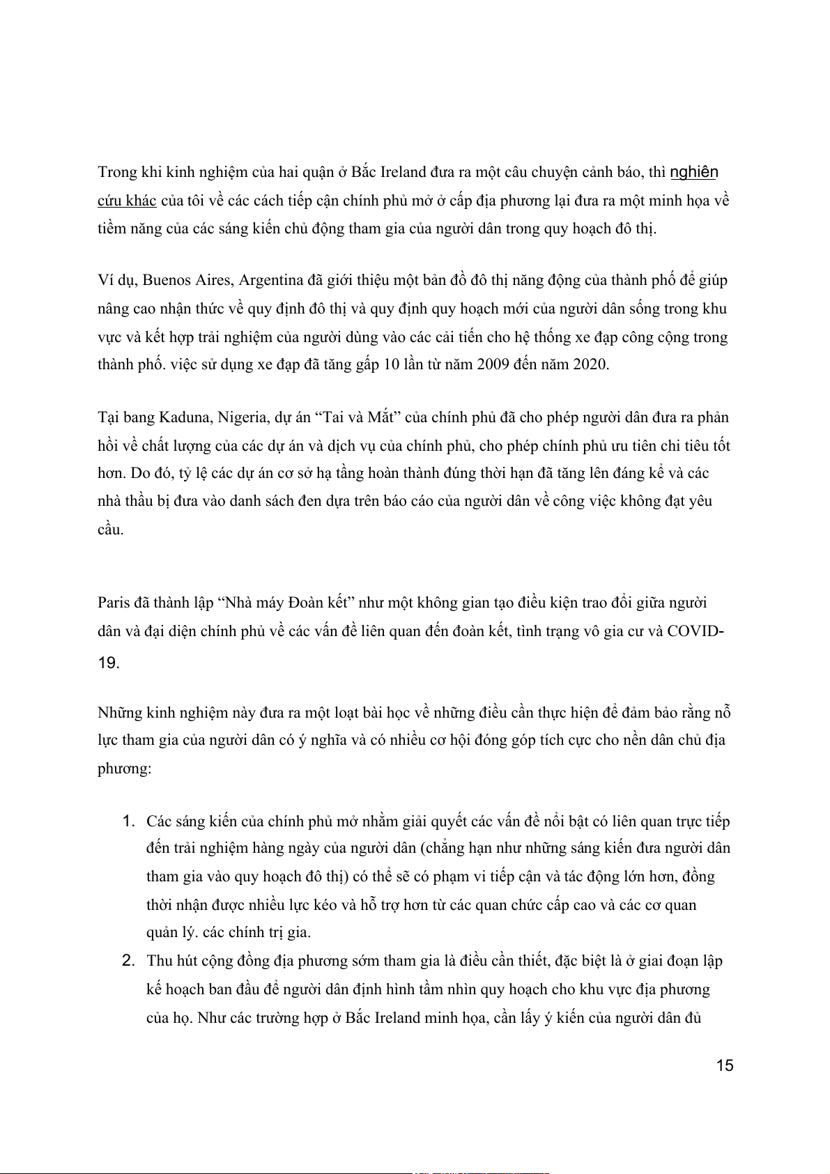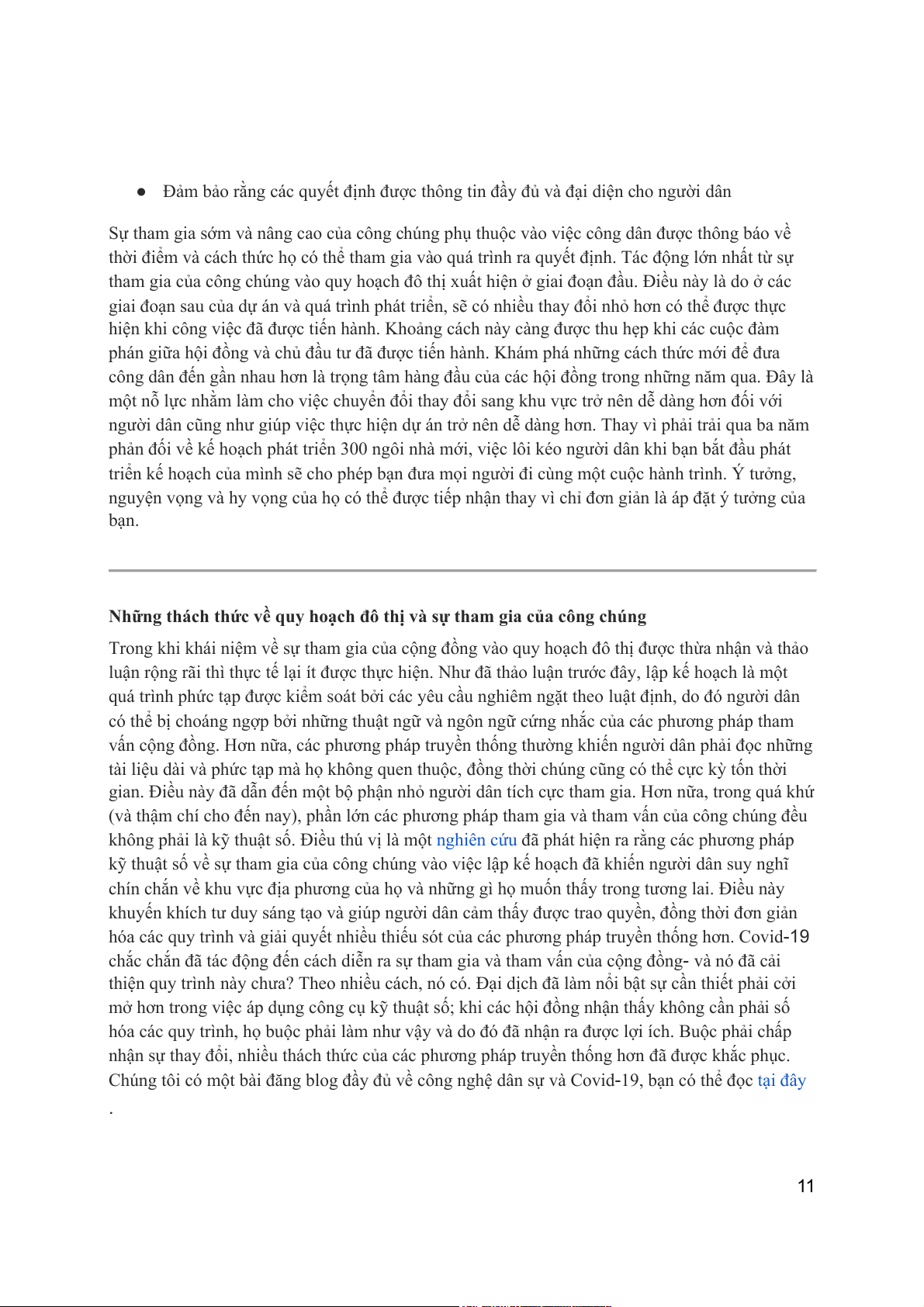 các dự án quy hoạch đô thị. Cách tiếp cận có sự tham gia này giúp đảm bảo rằng