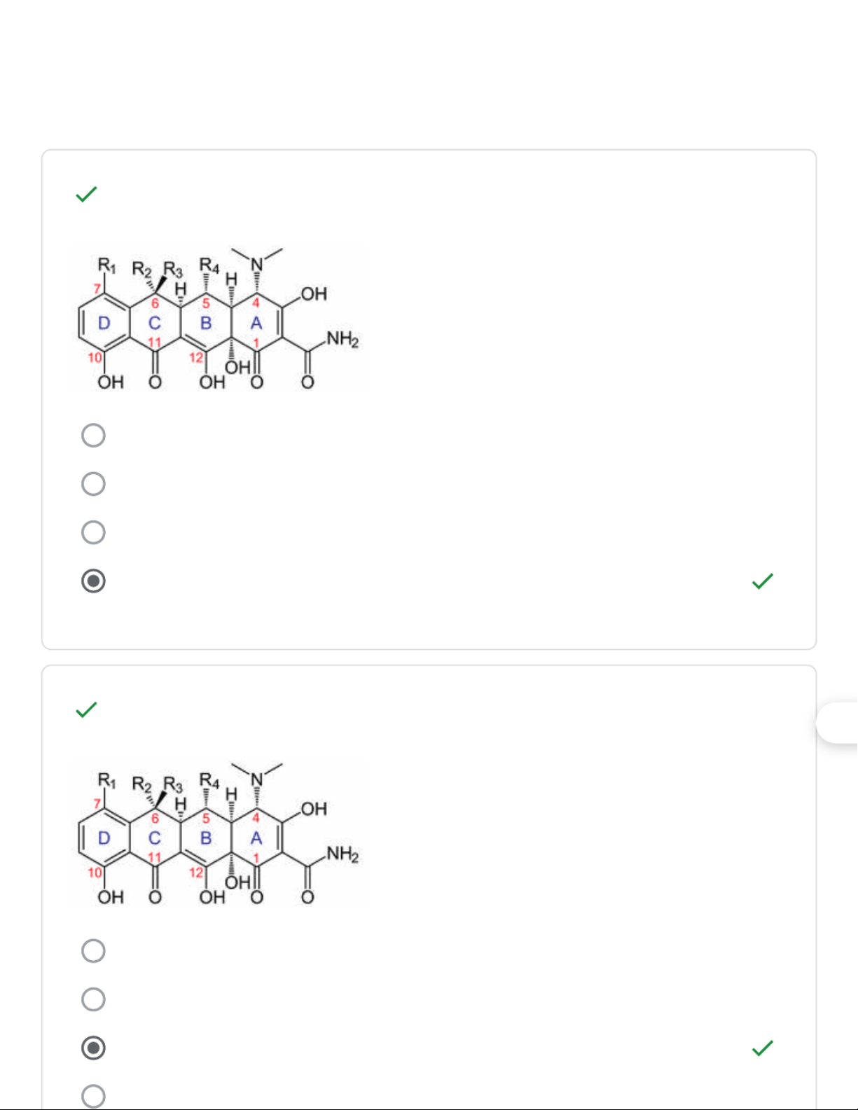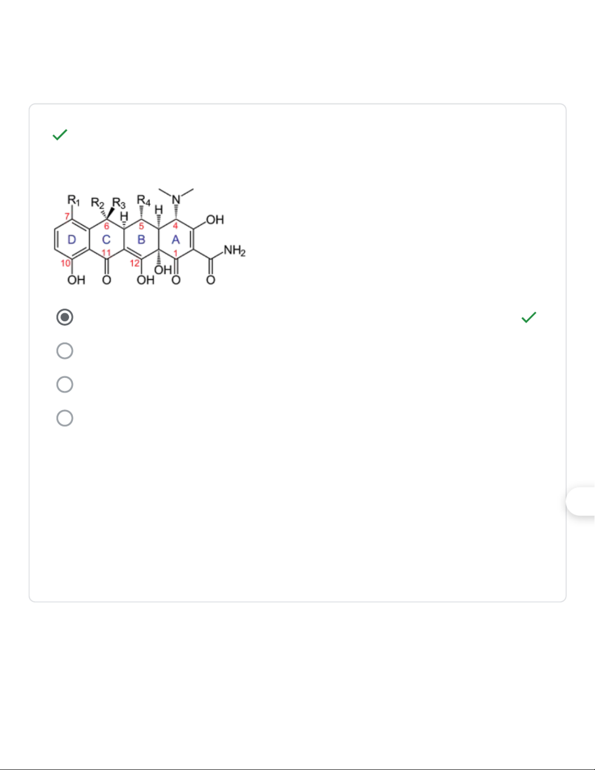 Cấu trúc chung của tetracyclin có đặc điểm gì? 1/1