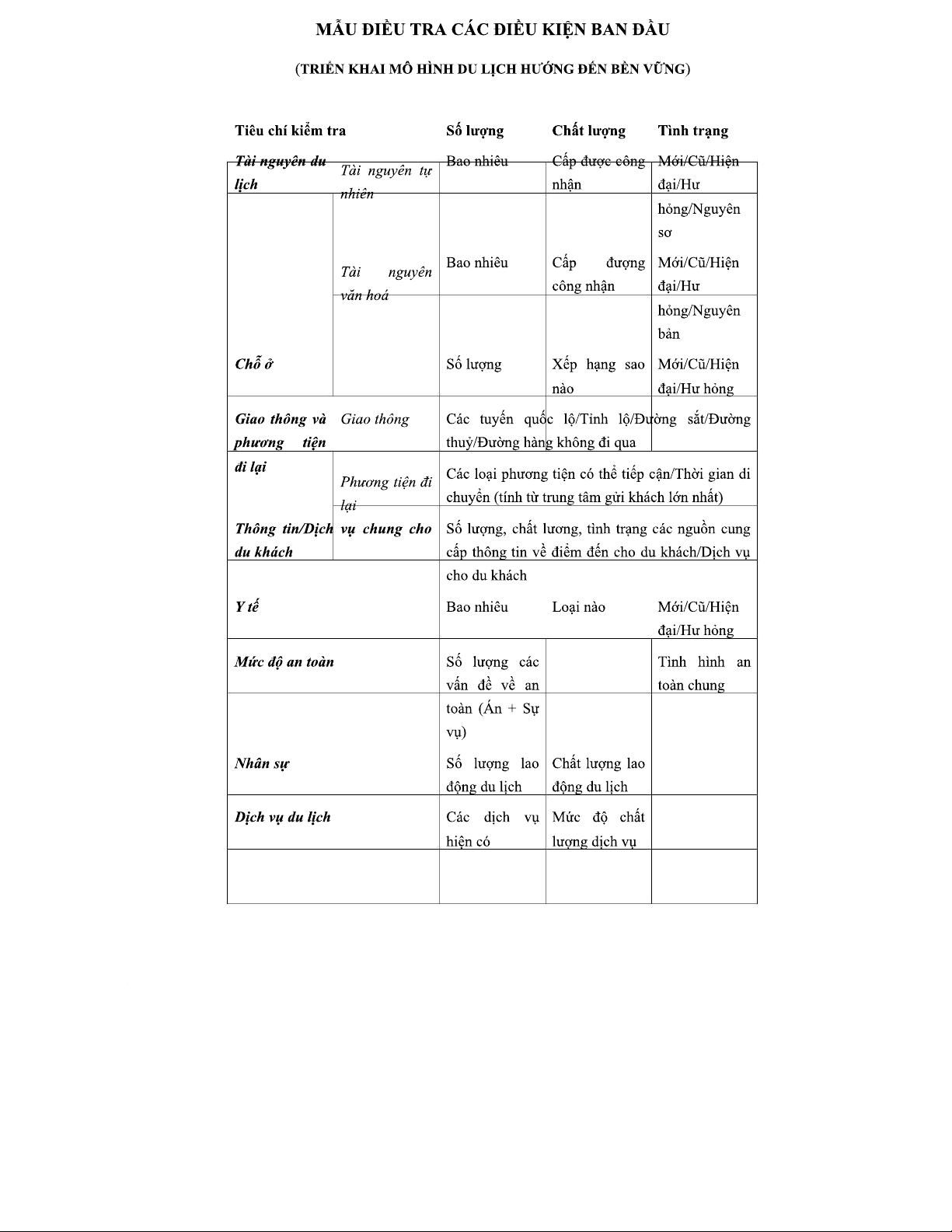 Khảo sát các tiêu chí điều tra mô hình du lịch bền vững