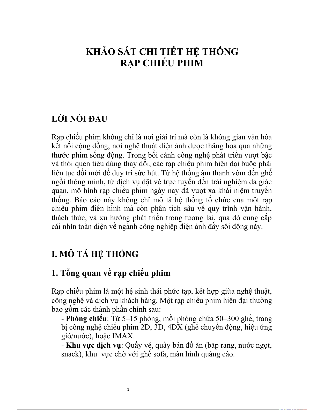 KHẢO SÁT CHI TIẾT HỆ THỐNG RẠP CHIẾU PHIM LỜI NÓI ĐẦU