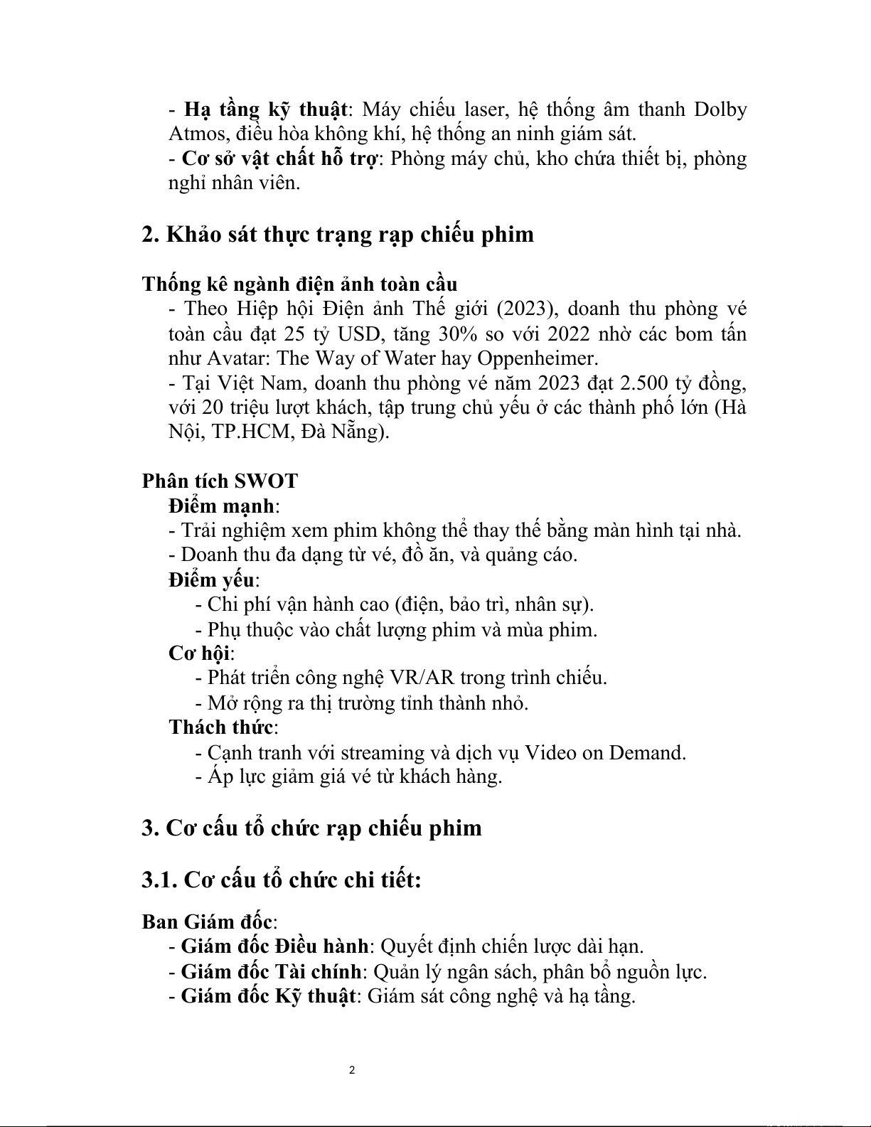 3. Cơ cấu tổ chức rạp chiếu phim