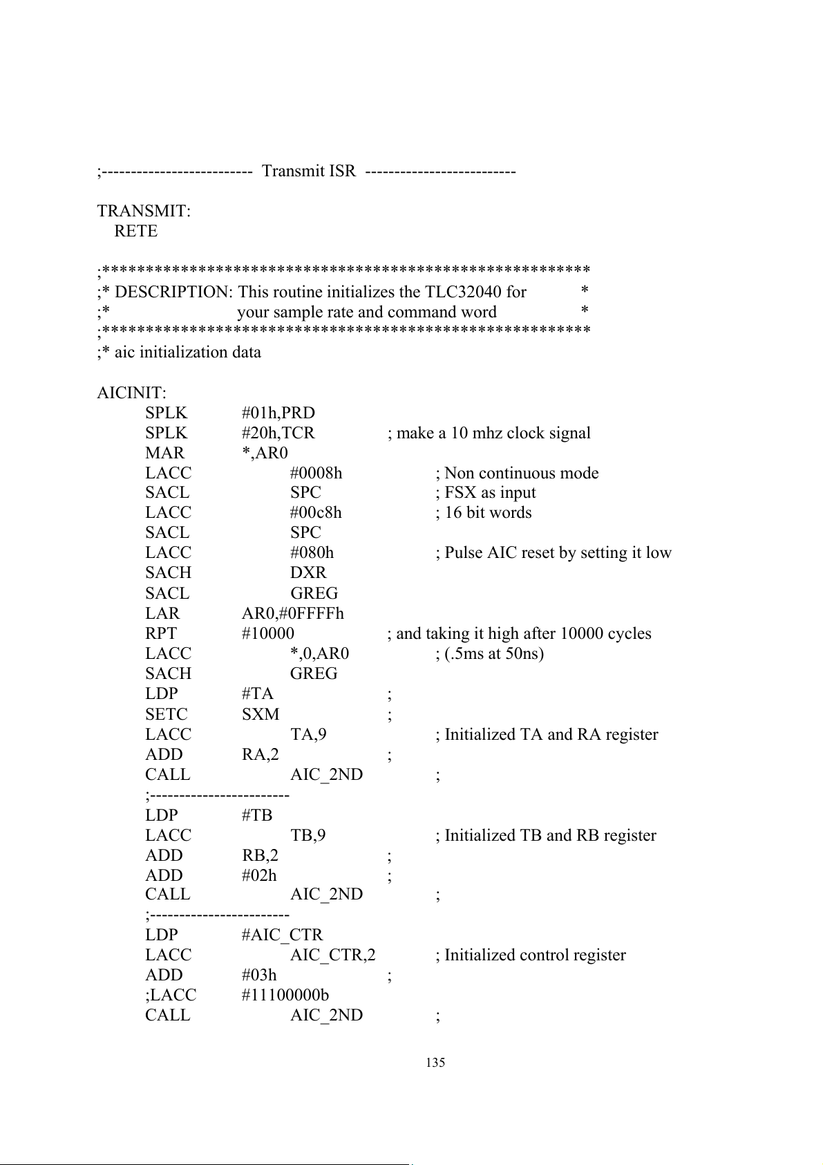 ; Initialized control register ADD #03h ; ;LACC #11100000b CALL AIC_2ND ; 135 RET ; AIC_2ND: LDP #0 SACH DXR ; CLRC INTM IDLE ADD #6h,15
