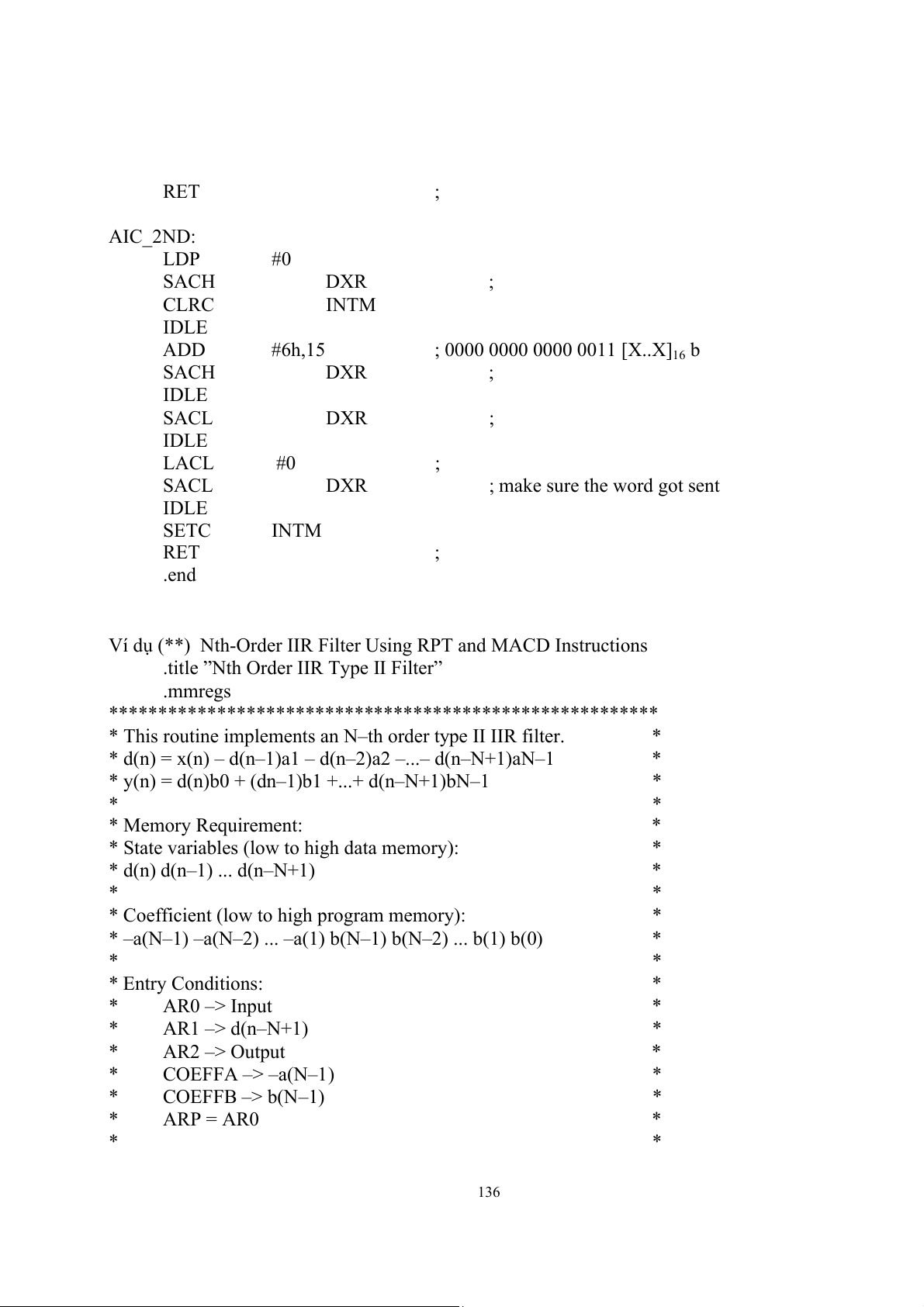 Ví dụ (**) Nth-Order IIR Filter Using RPT and MACD Instructions