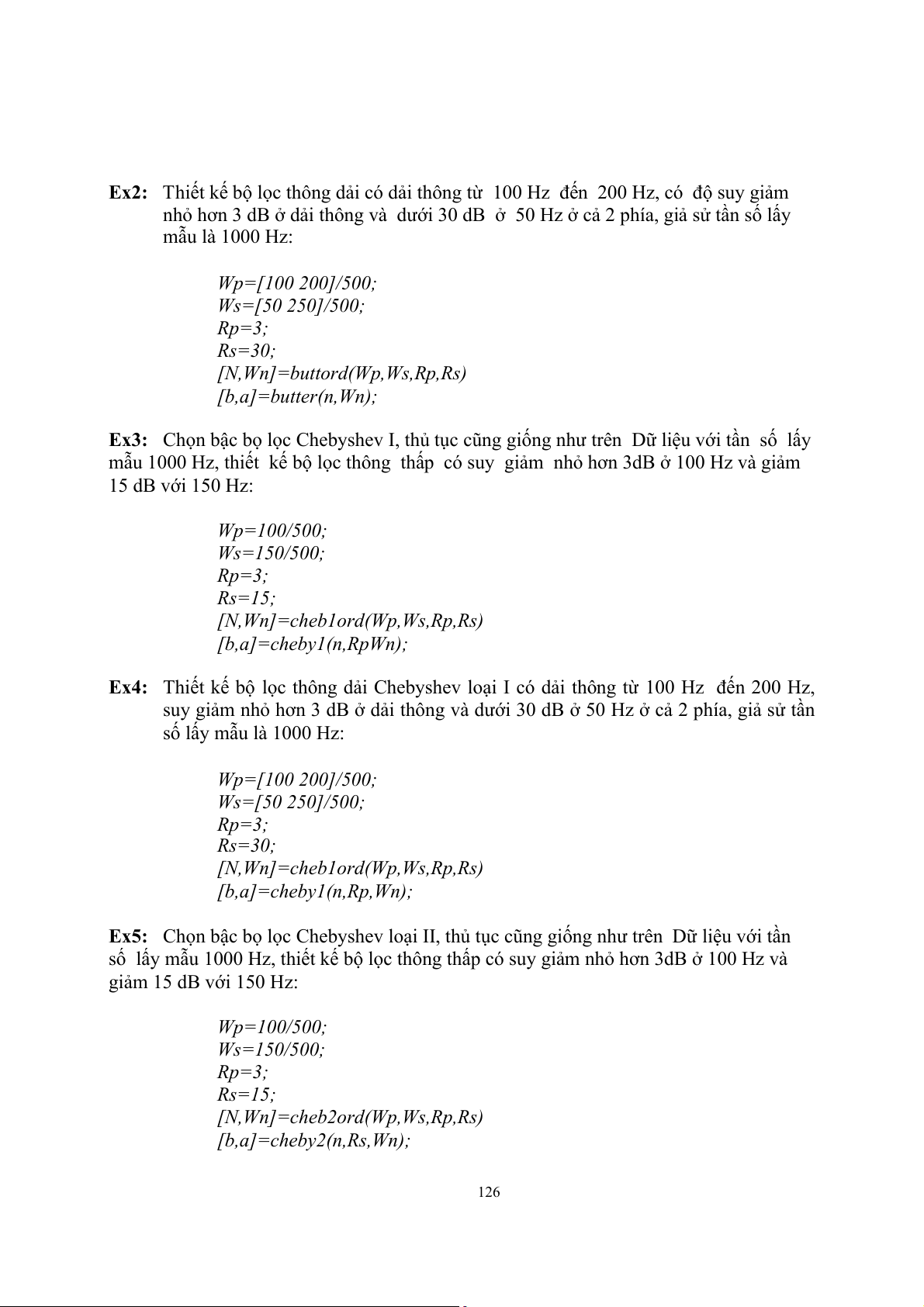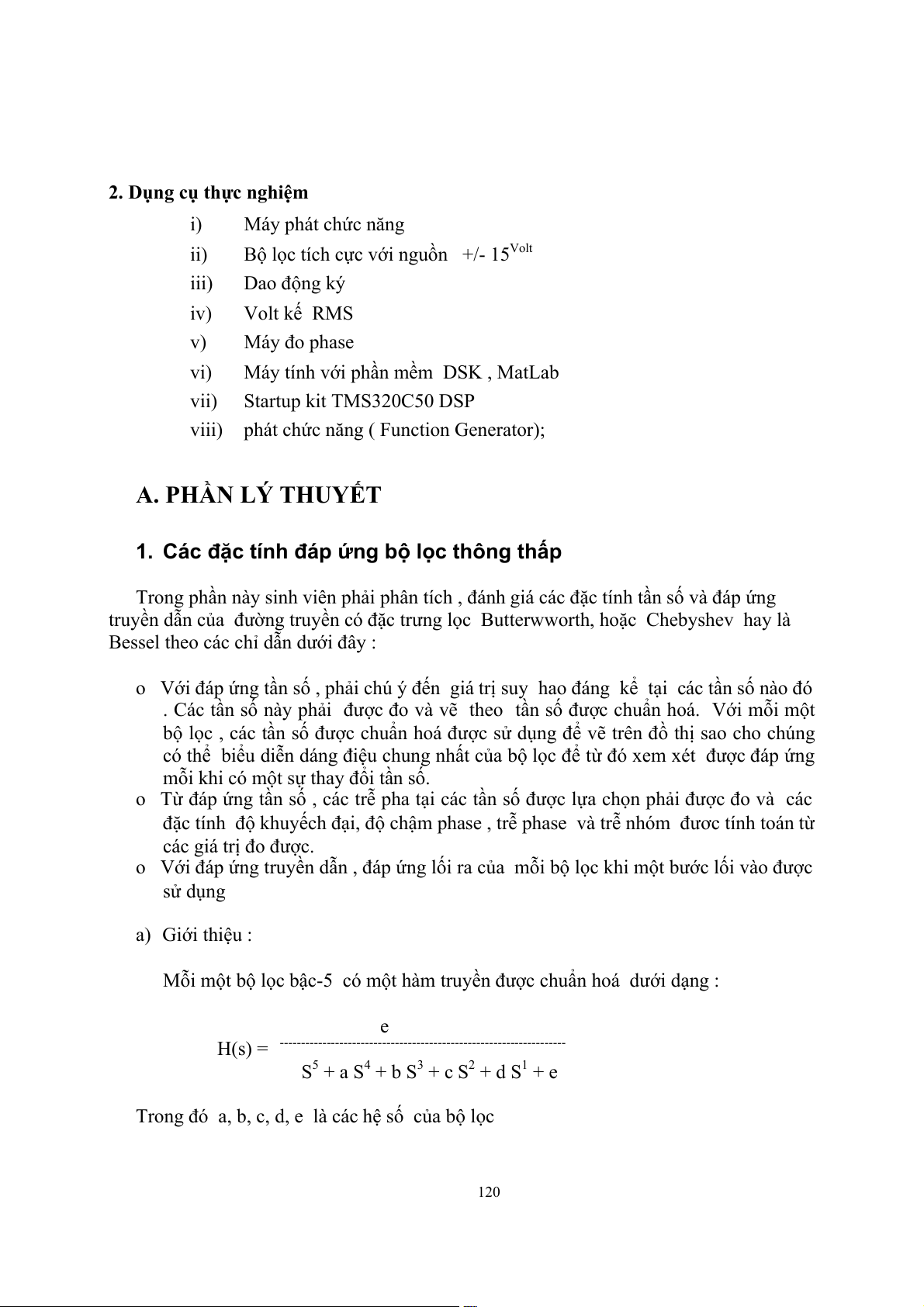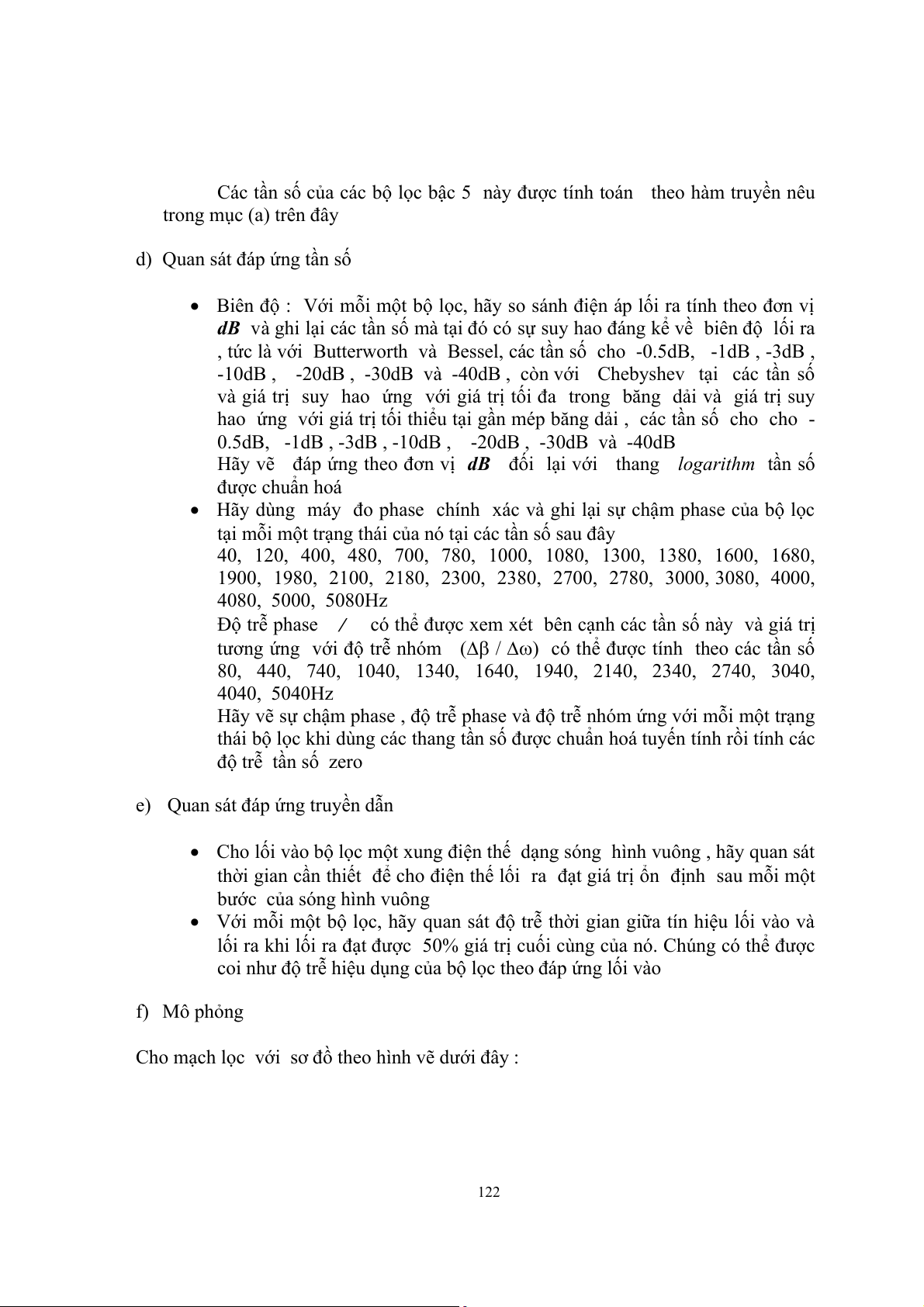 Thí nghiệm 2 và 4 là không bắt buộc. Các bộ lọc Butterworth, Chebyshev I,II và
