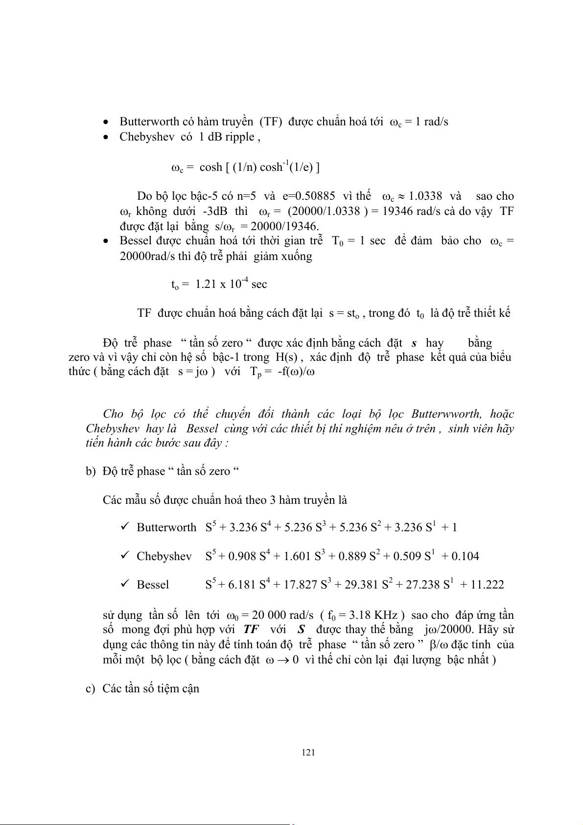 c) Các tần số tiệm cận 121