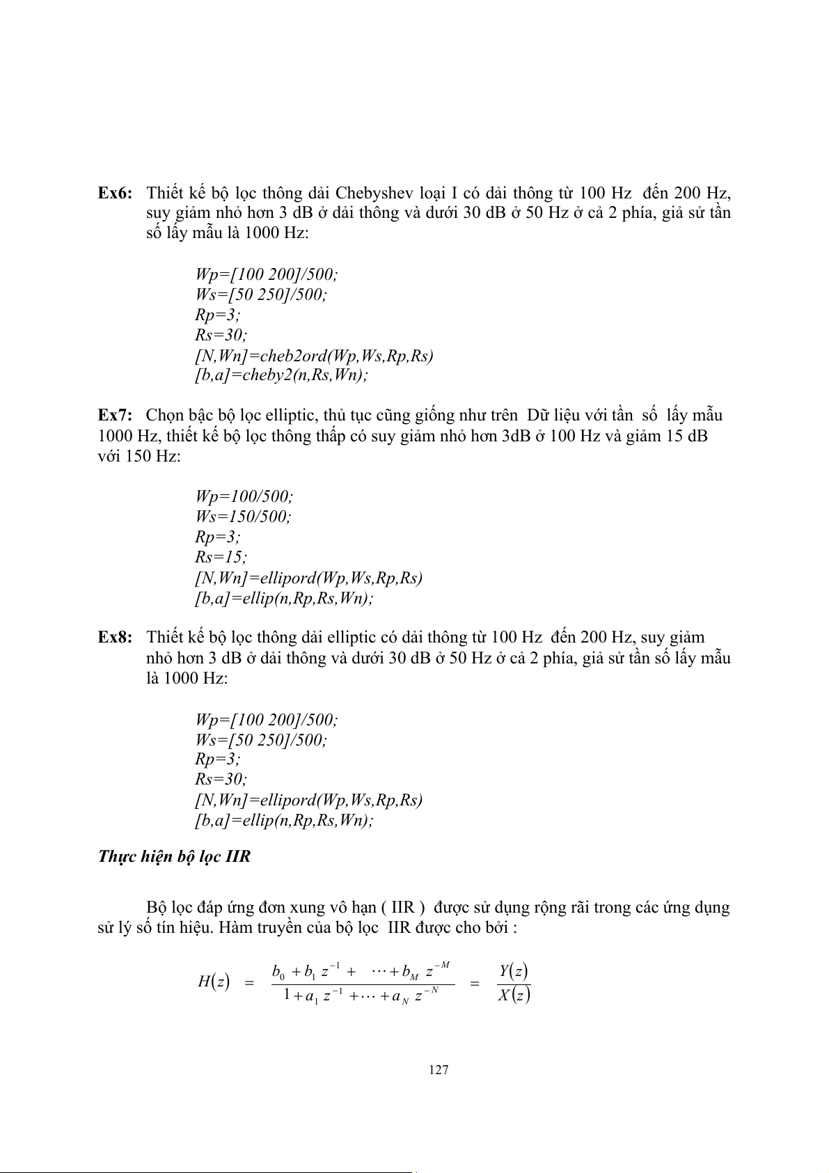 Dưới đây là các chương trình ví dụ về bộ lọc IIR . Chương trình ví dụ (*) dưới