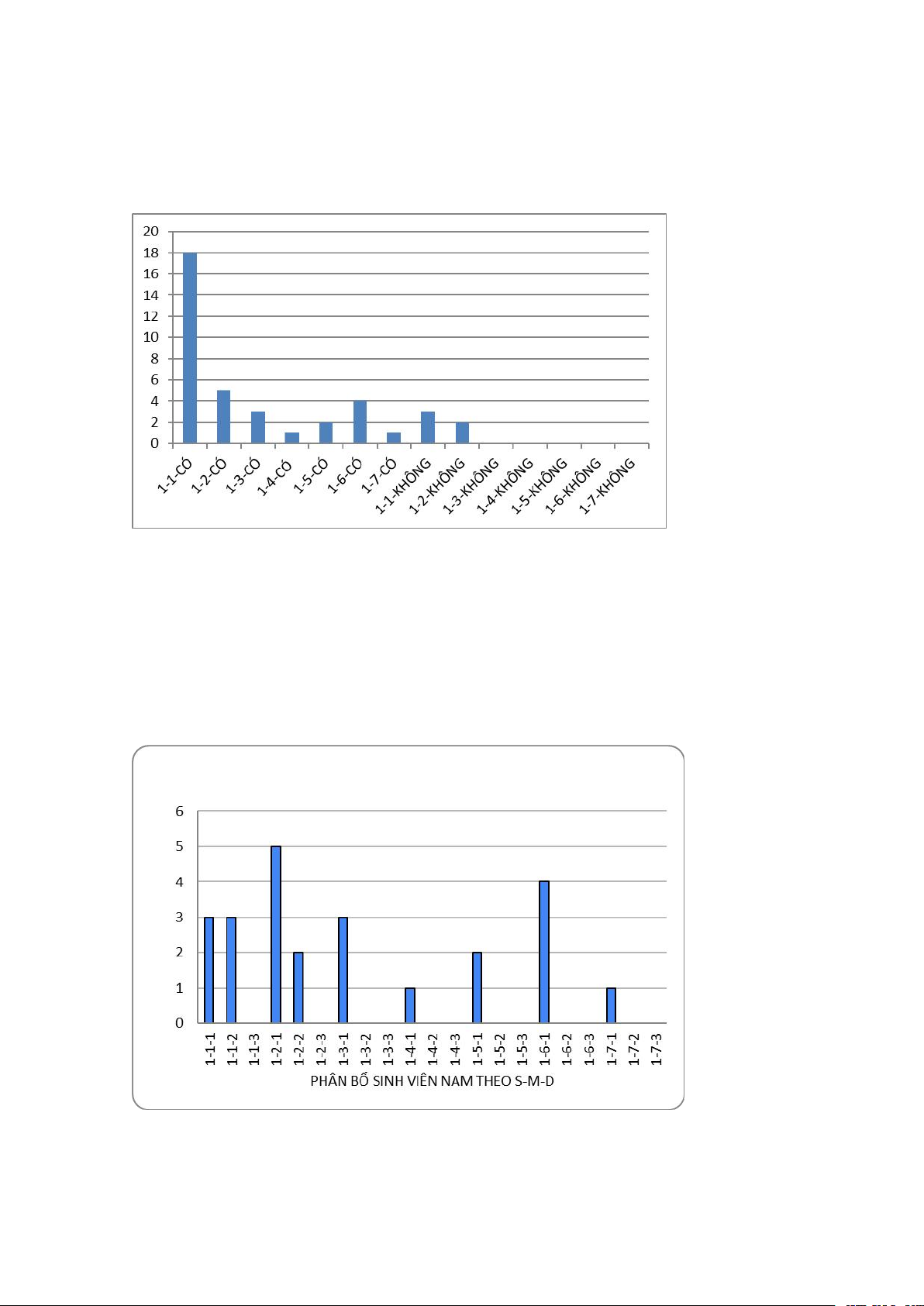 6. Biểu đồ cột thể hiện các tiêu chí S-M-Có/Không của phân tổ nam: