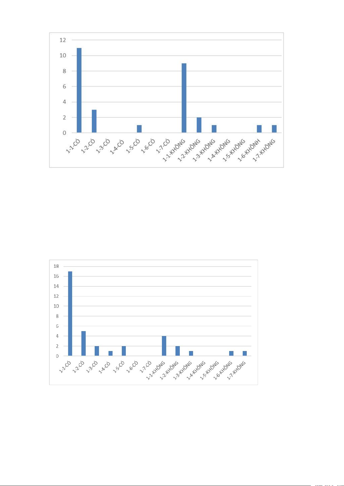 2. Biểu đồ cột thể hiện các thuộc tính S-M-CÓ/KHÔNG: