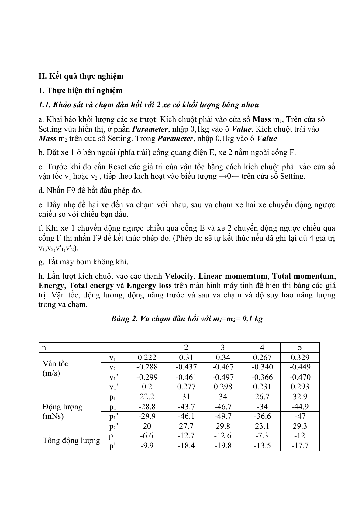 1.1. Khảo sát và chạm đàn hồi với 2 xe có khối lượng bằng nhau
