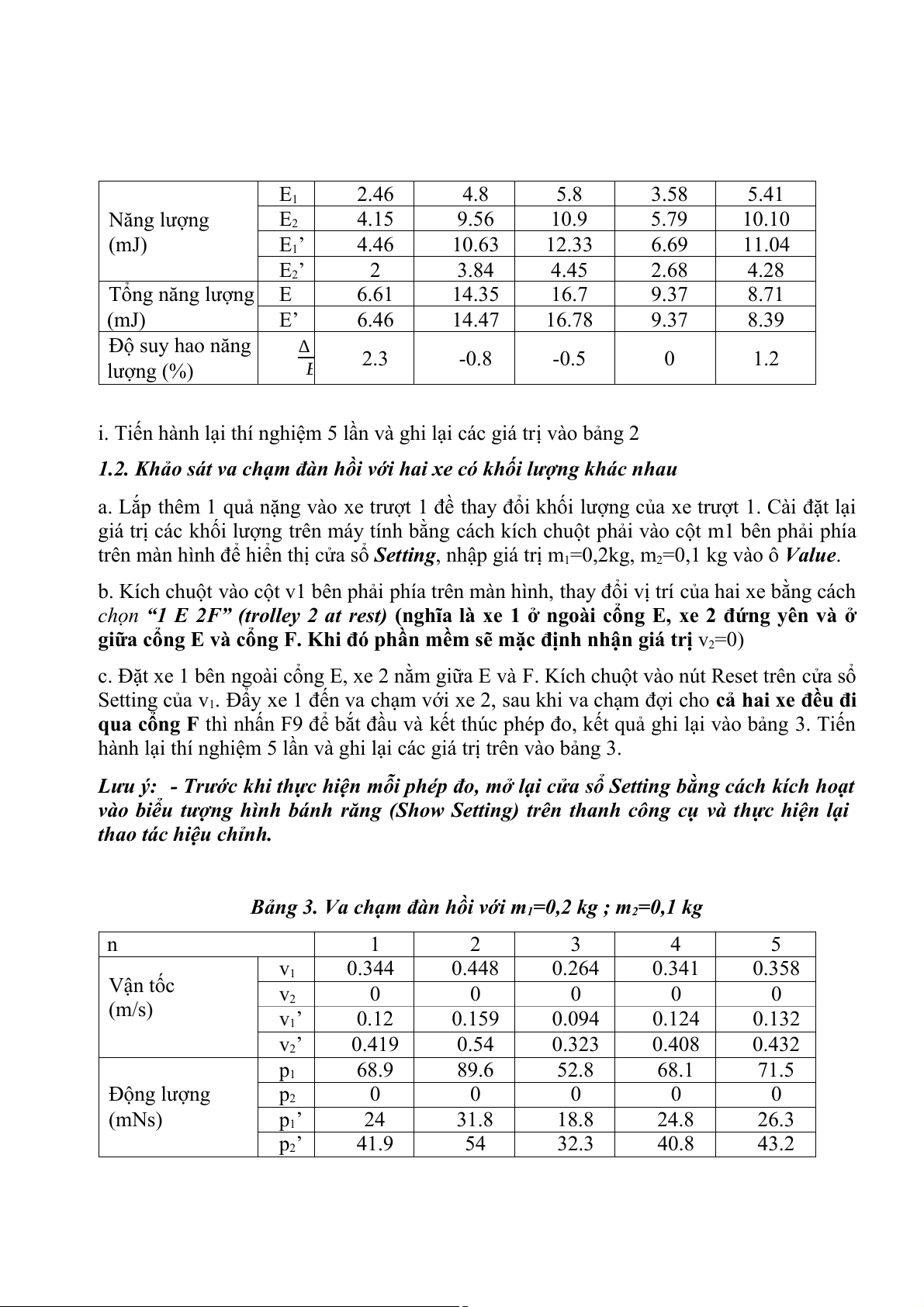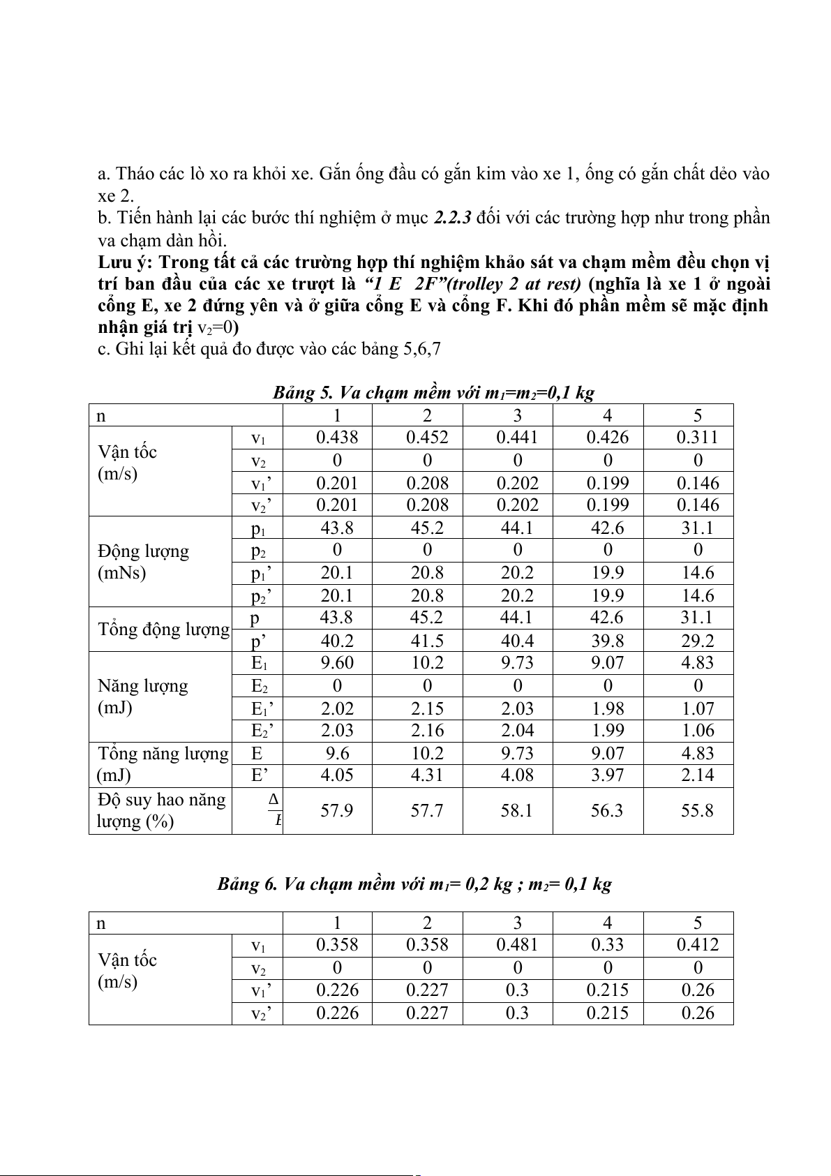 Lưu ý: Trong tất cả các trường hợp thí nghiệm khảo sát va chạm mềm đều chọn vị