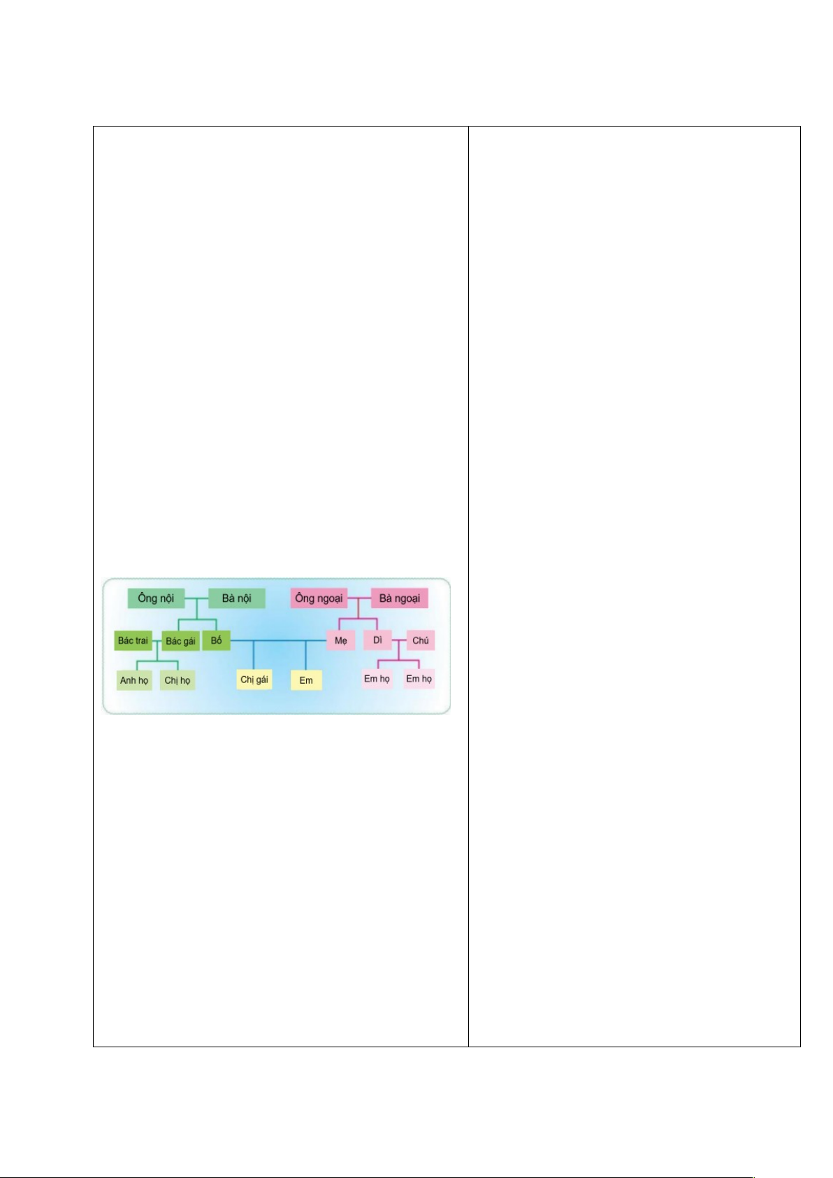 - Nêu được mối quan hệ họ hàng nội, ngoại.