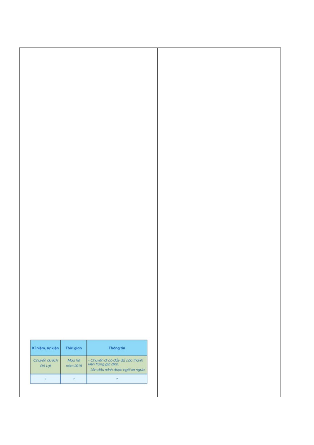 – Vẽ được đường thời gian theo thứ tự các sự kiện lớn, các mốc quan trọng đã xảy ra trong gia đình.