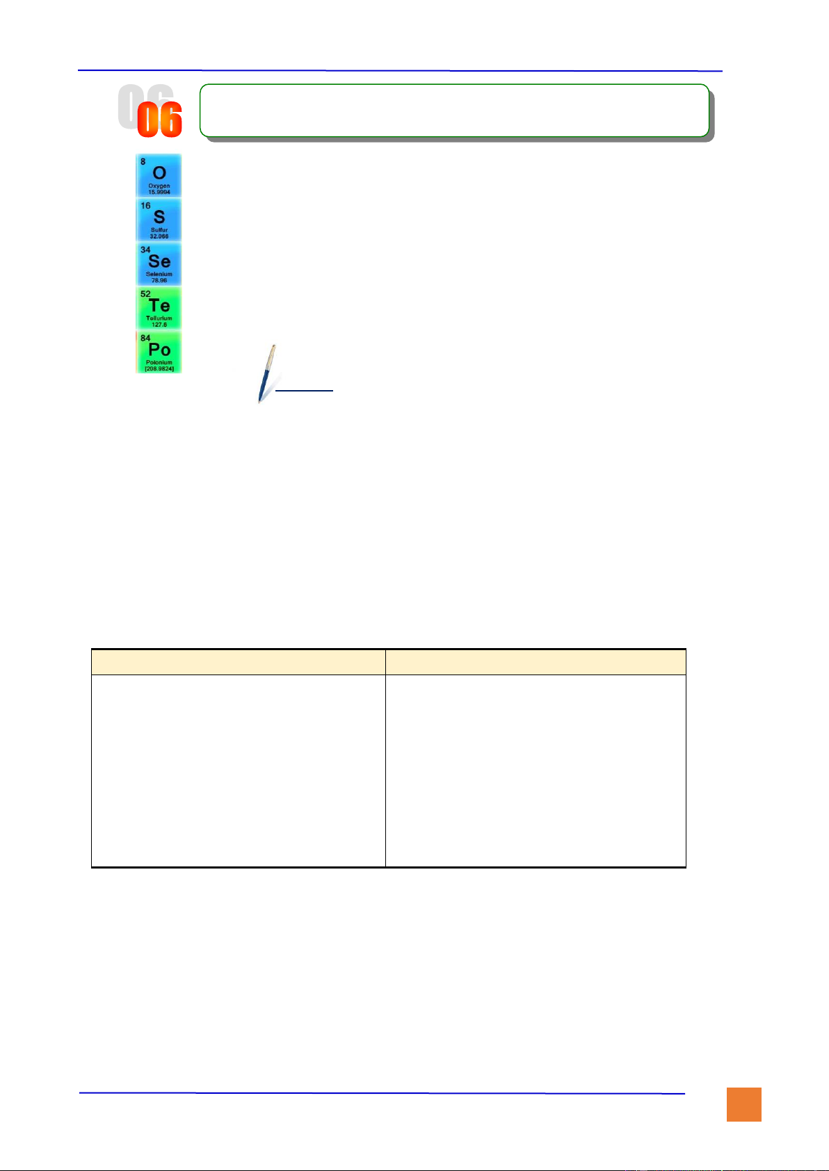 ▪ Gồm các nguyên tố: O (oxi), S (lưu huỳnh), Se (selen), Te (telu), Po (poloni) phóng xạ.
