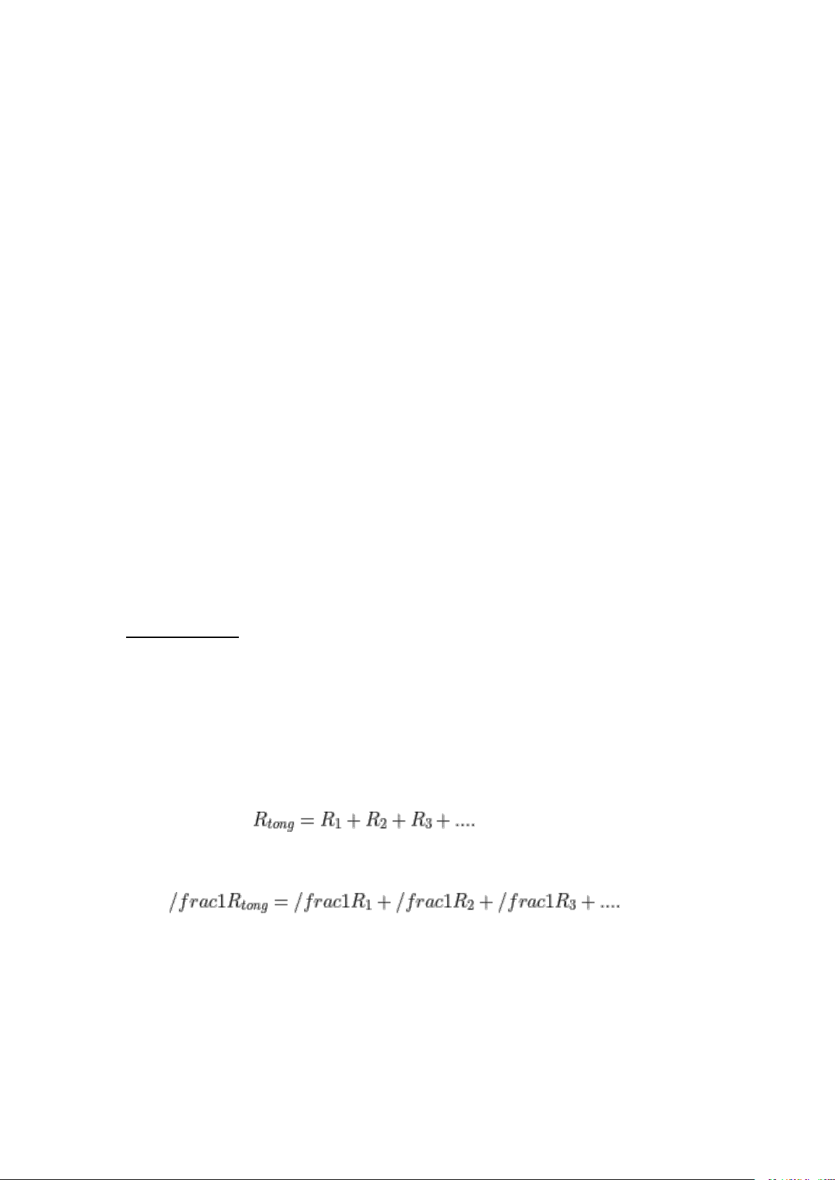 + Tổng điện trở: Điện trở nối tiêp có tổng điện trở bằng tổng của cac gia trị điện trở riêng lẻ: - Song Song: