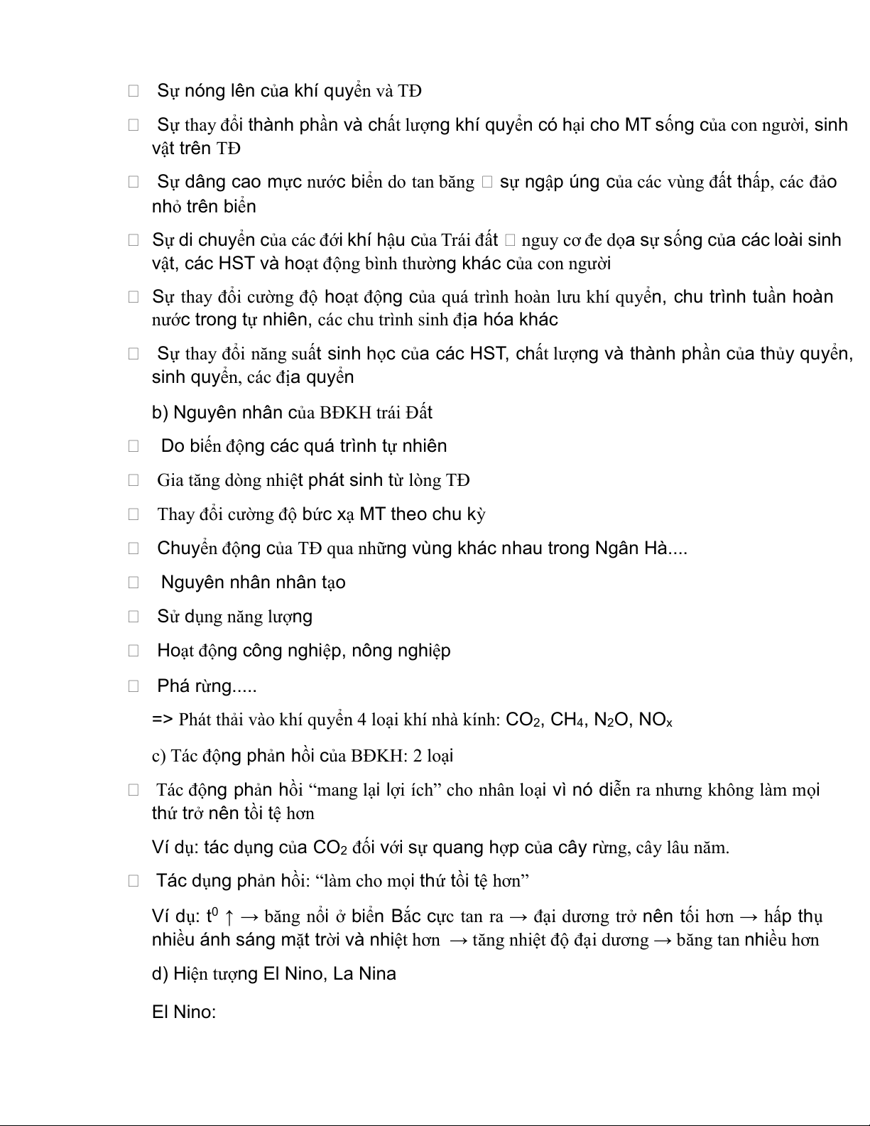 c) Tác động phản hồi ủ c a BĐKH: 2 loại