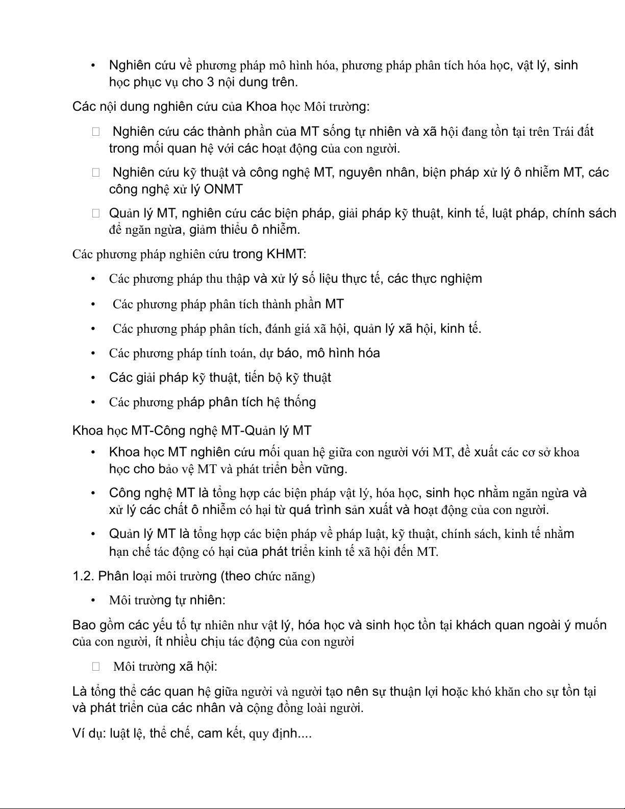 CHƯƠNG 1. Các khái niệm cơ bản về môi trường và khoa học Môi trường